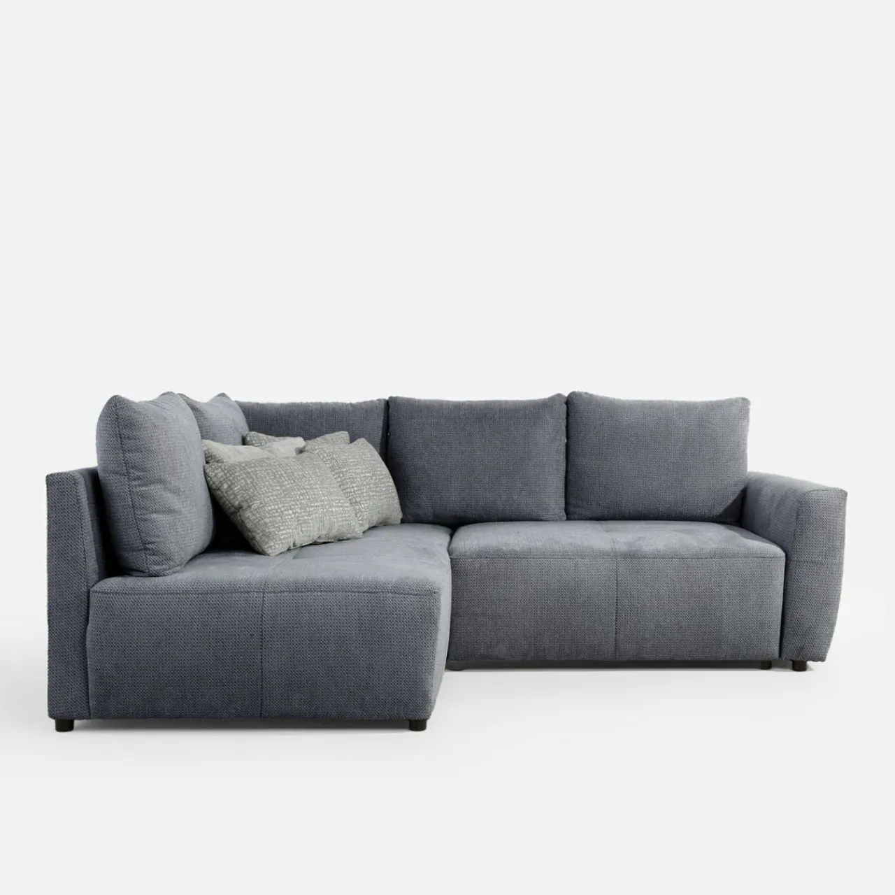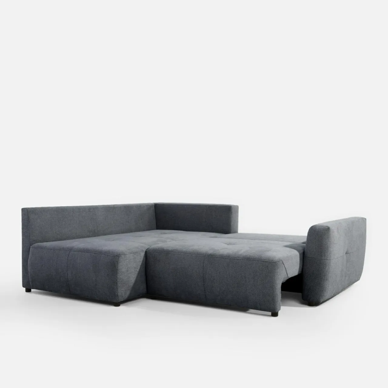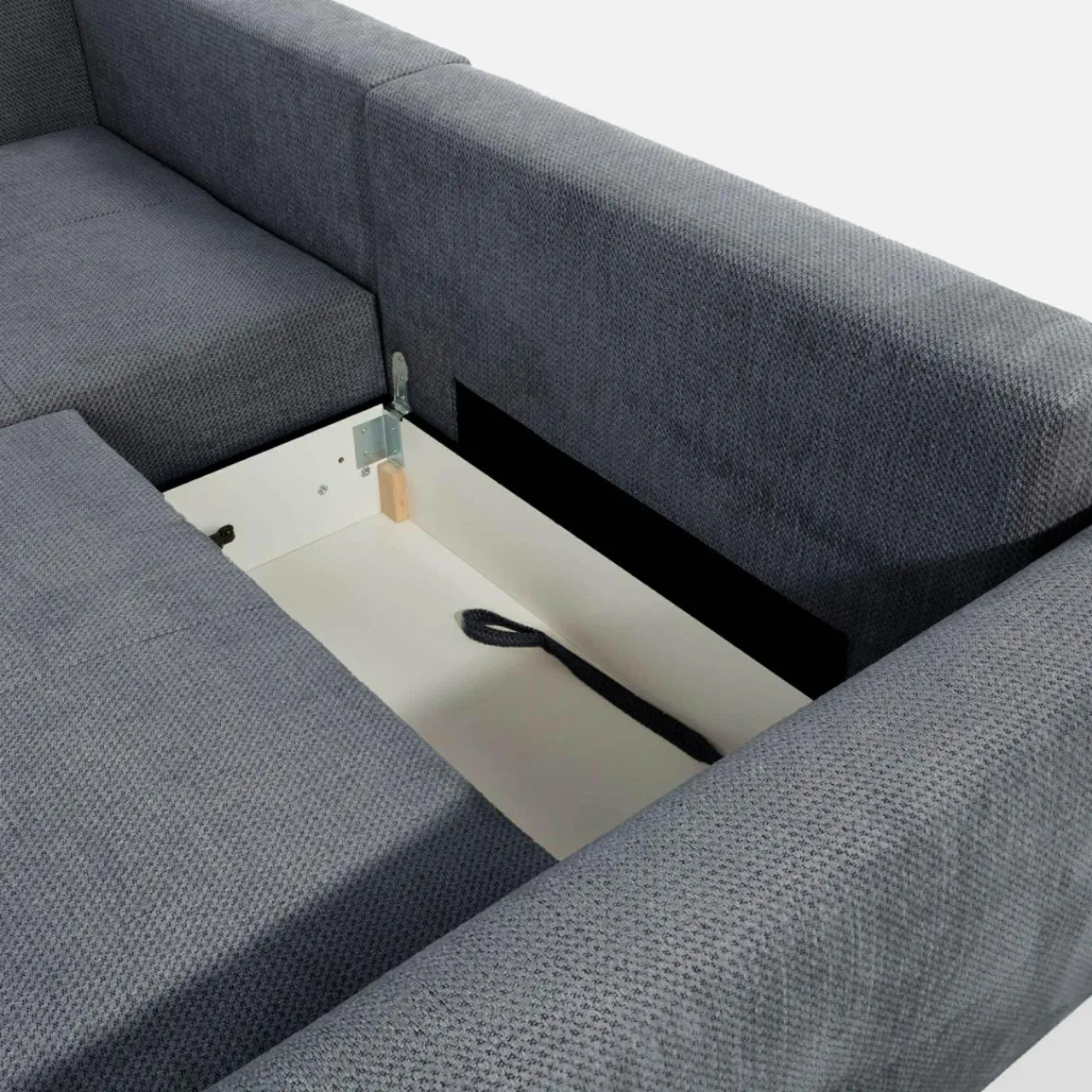 - Pojemnik pod siedziskiem to dodatkowa przestrzeń, którą wykorzystasz na pościel i inne domowe tekstylia. Dostęp do niego uzyskasz podczas rozkładania narożnika.