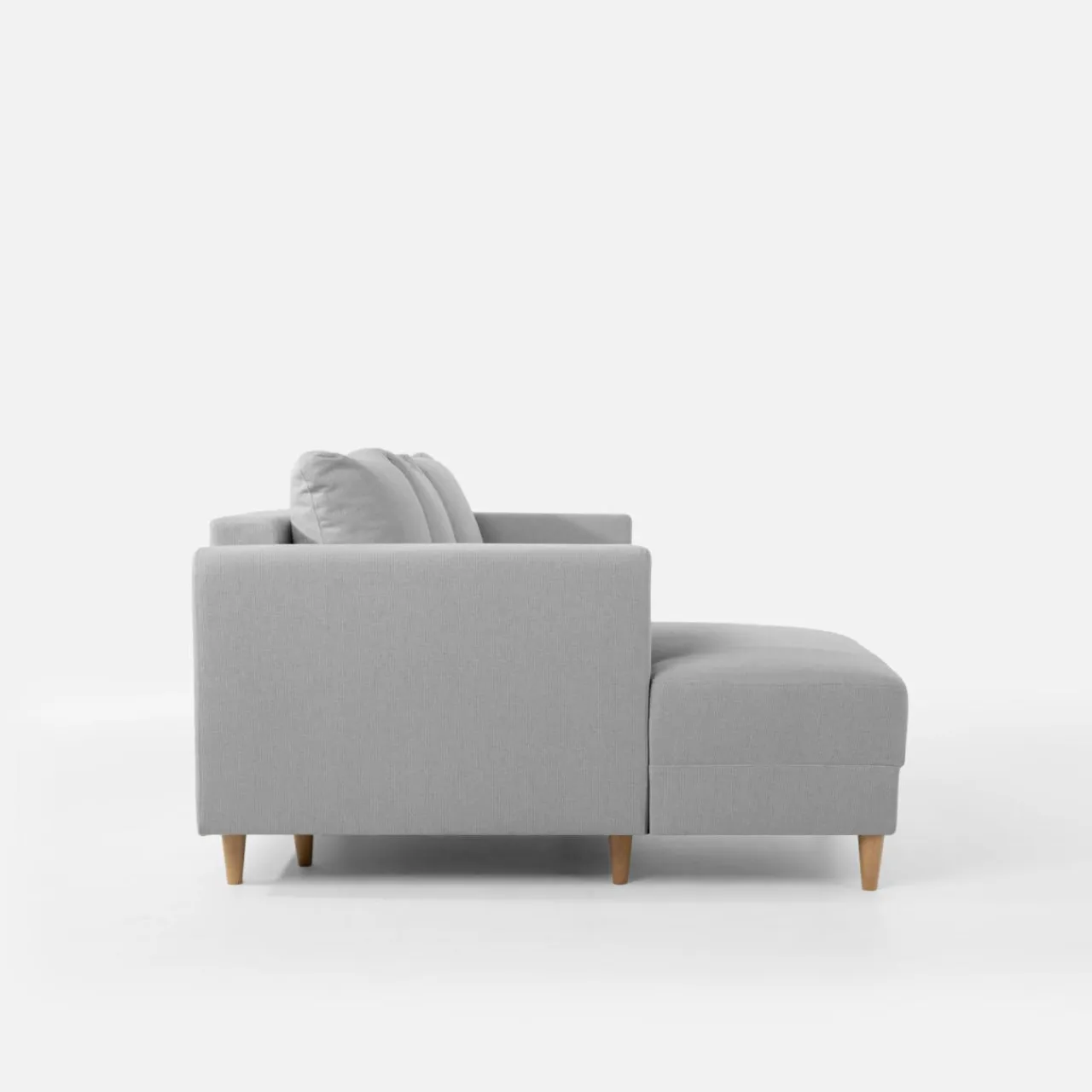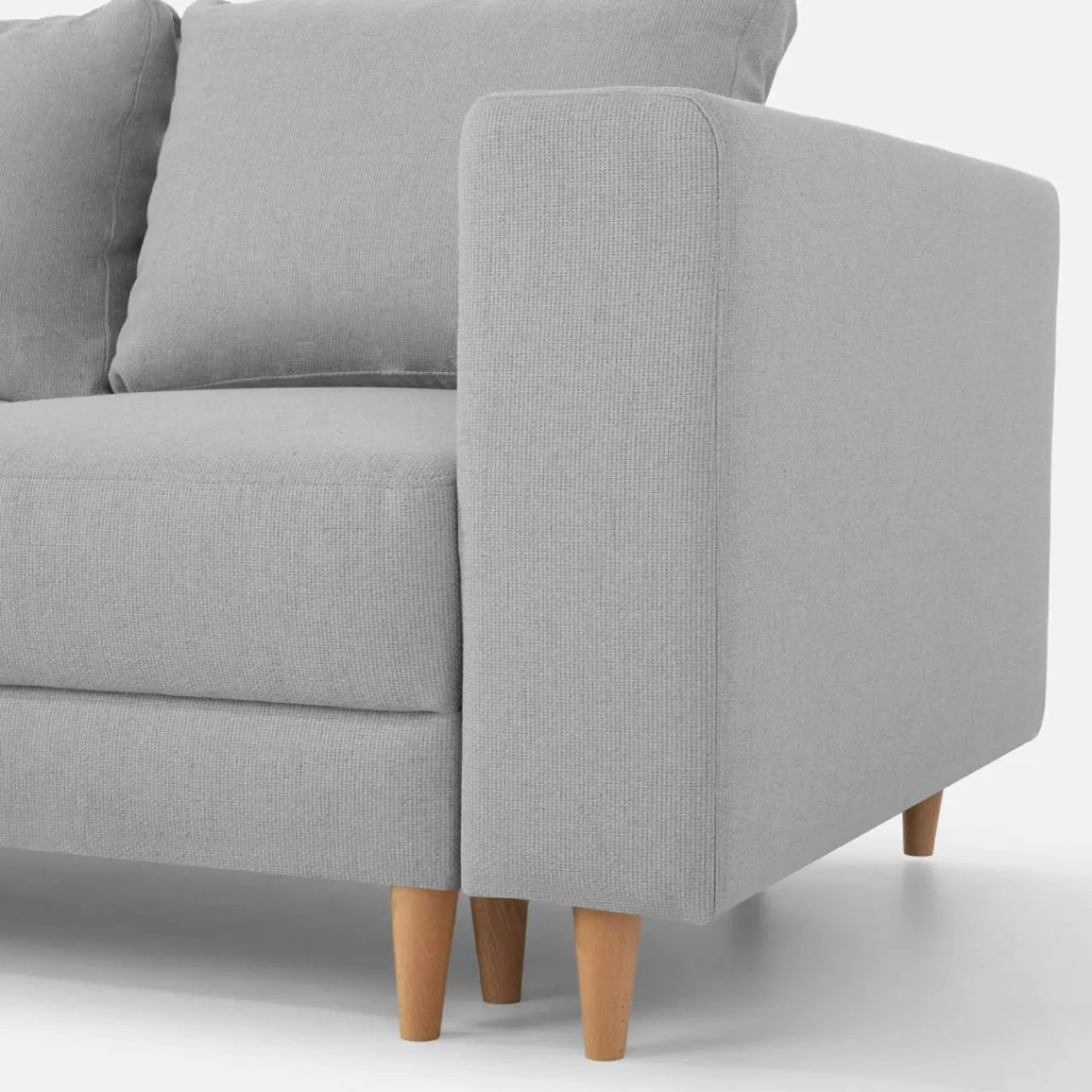 Prosta linia narożnika PERA wpisze się w wystrój nowoczesnego salonu. Wysokie nóżki z drewna nadadzą lekkości, dzięki czemu narożnik nie przytłoczy wnętrza.
