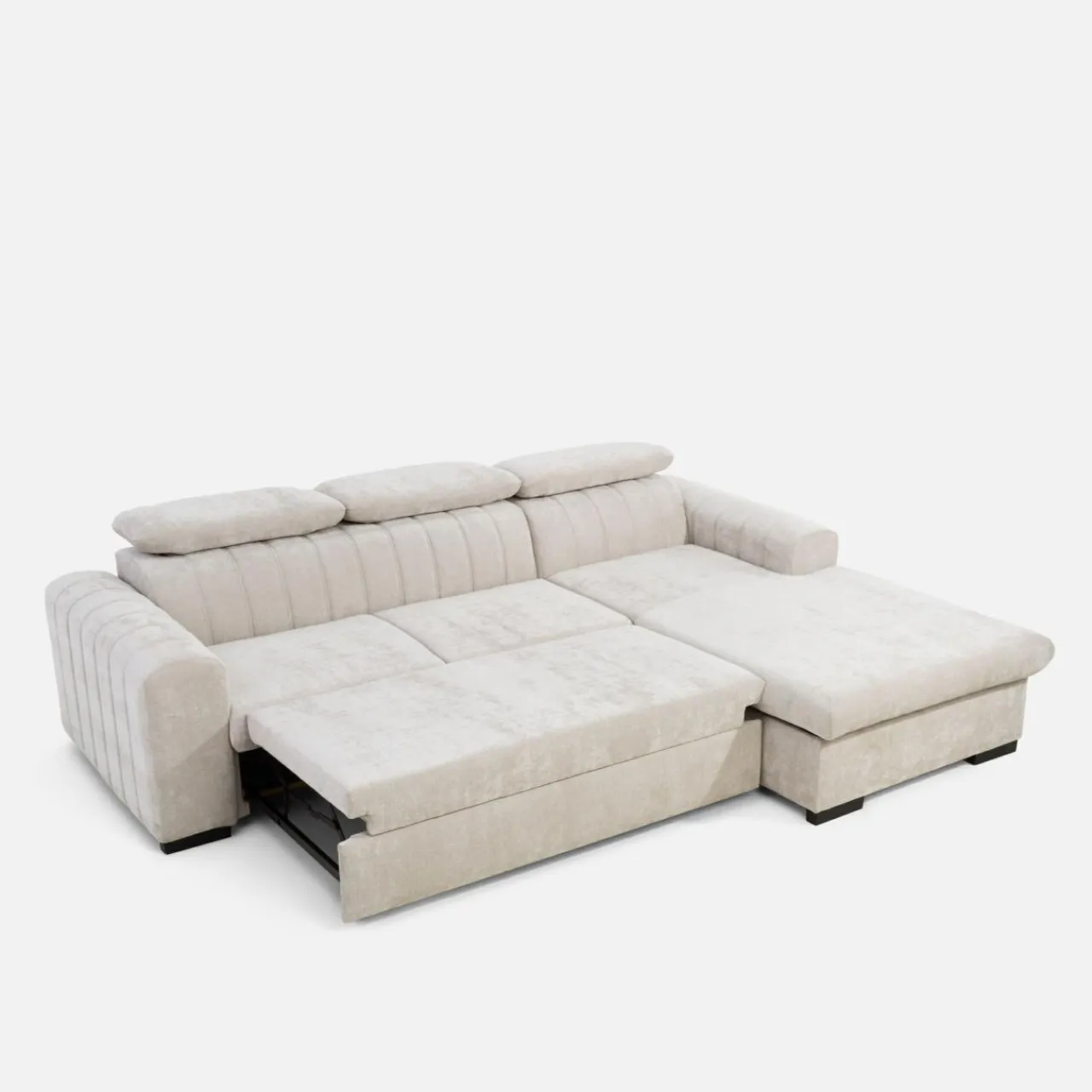 Stelaż pod siedziskiem wysuwamy i podnosimy za pomocą uchwytu. Mebel nie wymaga odsuwania od ściany. Idealny do okazjonalnego spania.