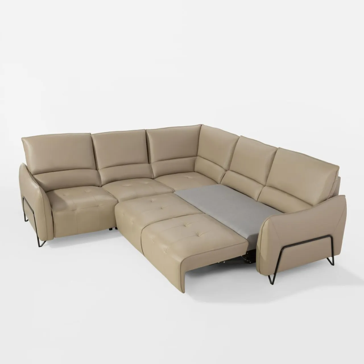 - Narożnik oferuje miejsce do okazjonalnego spania – podnieś płynnie siedzisko bez rysowania podłogi, aby uzyskać powierzchnię 135×200 cm.