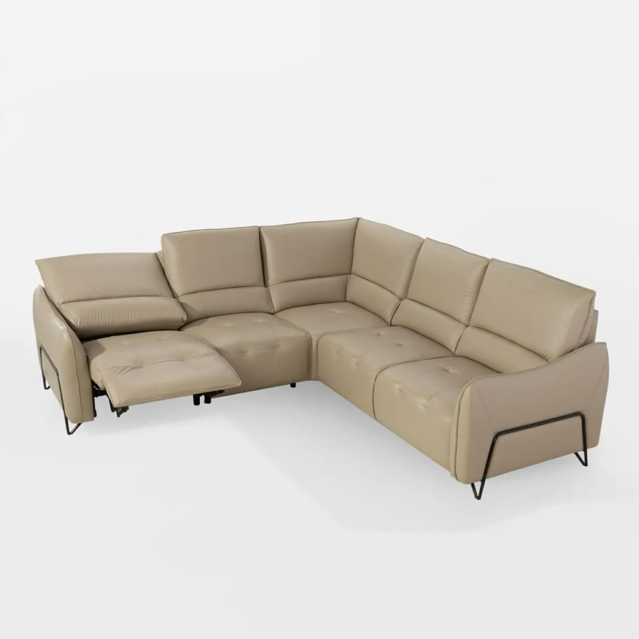 - Narożnik jest wyposażony w fotel z elektrycznie sterowaną funkcją relaksu – wystarczy nacisnąć przycisk, aby się wygodnie odchylić i rozprostować nogi.