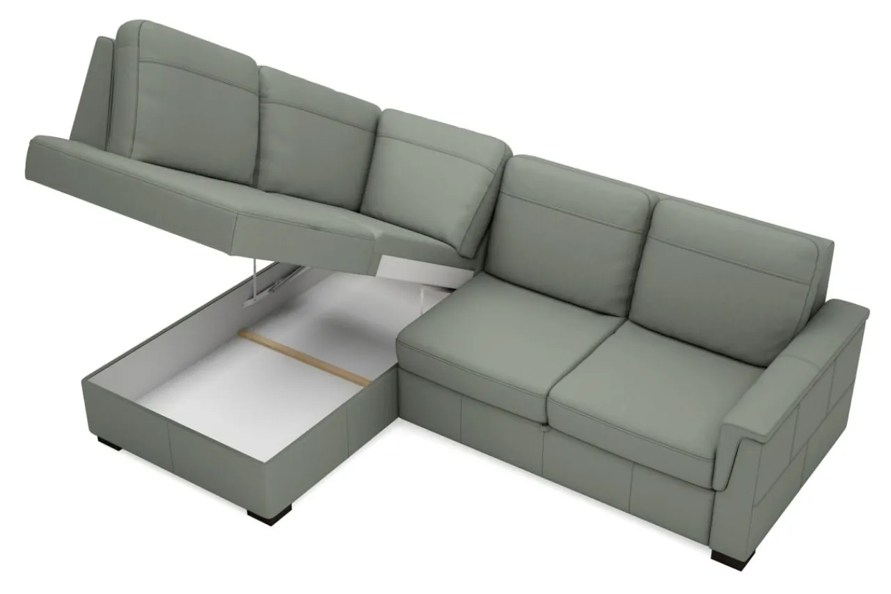 W funkcjonalnym narożniku nie może zabraknąć miejsca na pościel. Wysoko podnoszona otomana do góry ułatwia załadunek, a przy okazji jest pojemna.