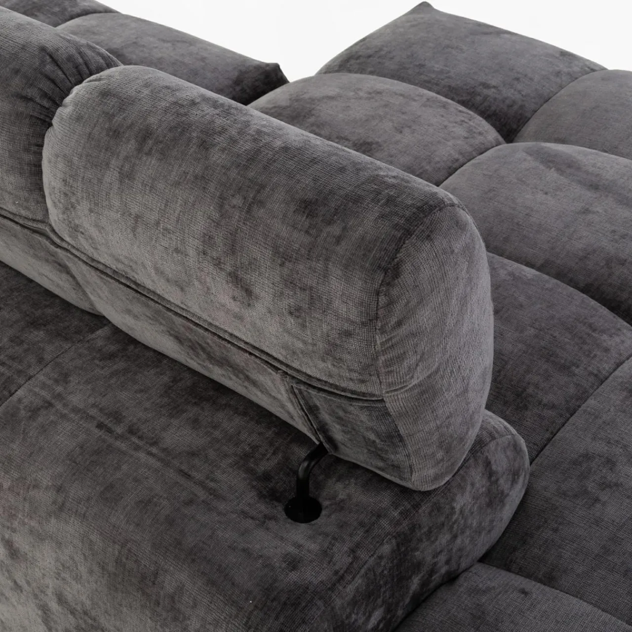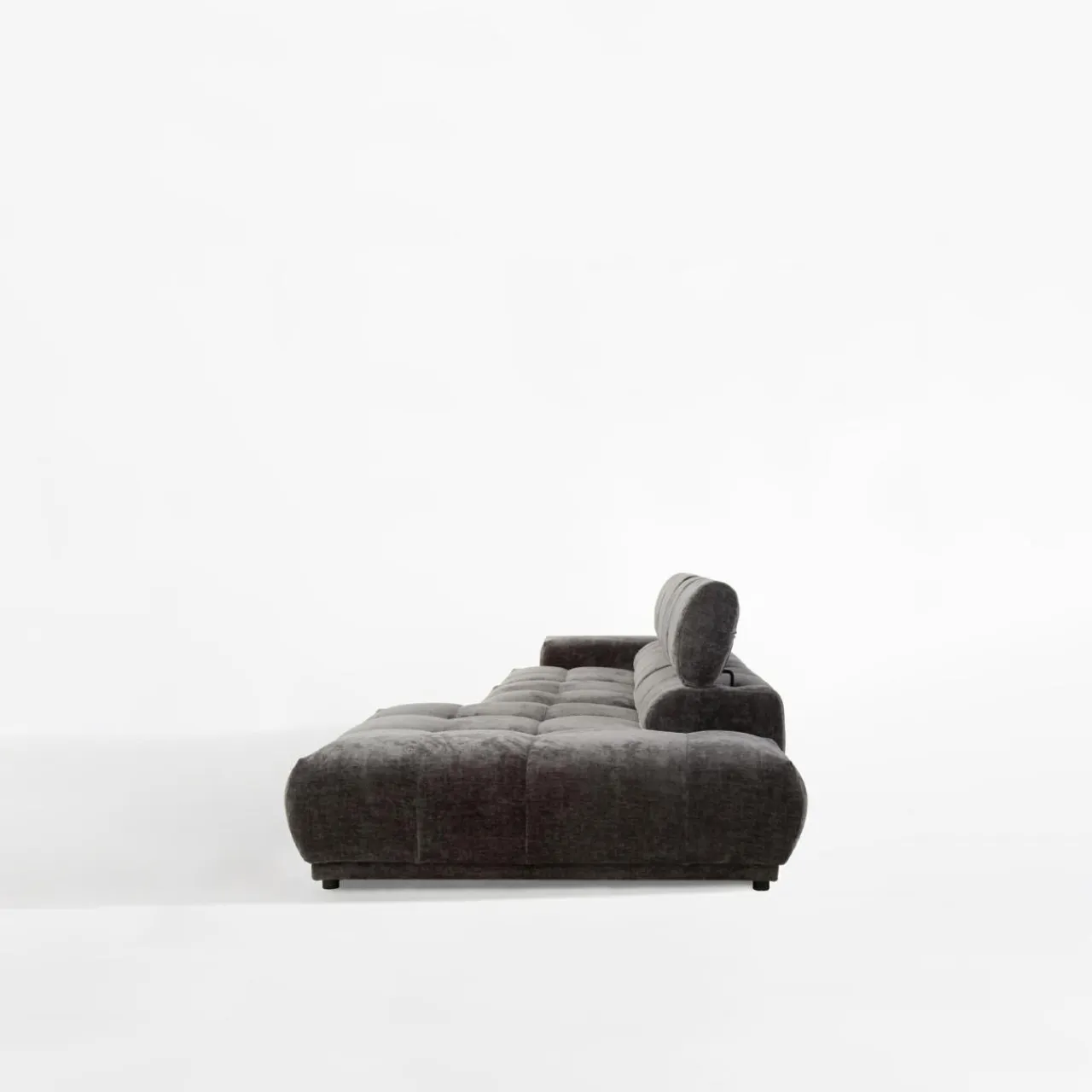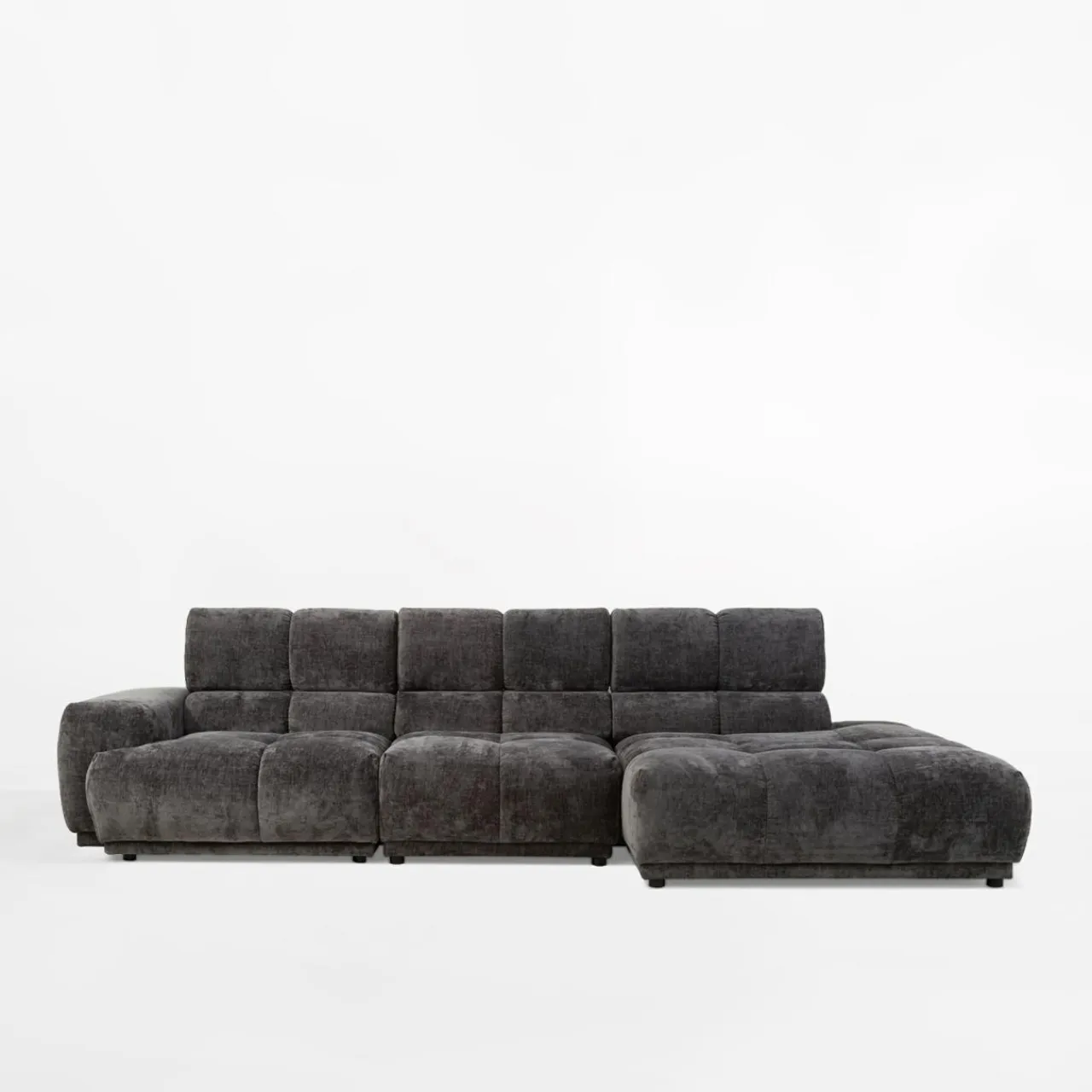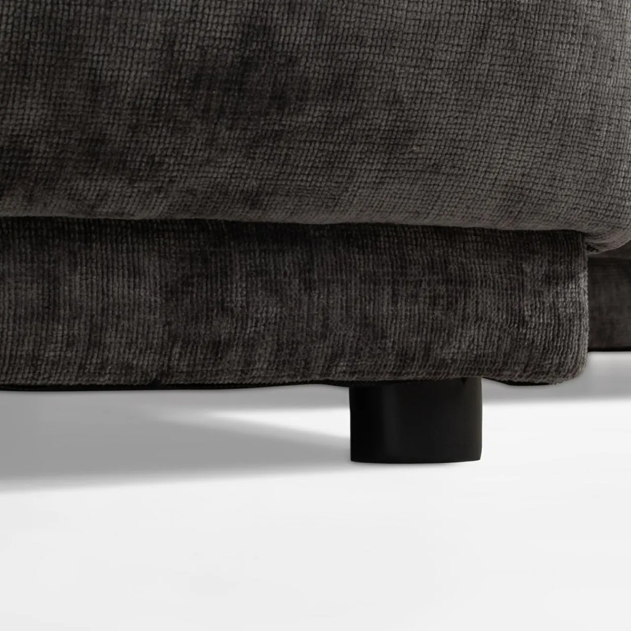Stwórz elegancką atmosferę w salonie z narożnikiem CHANI. Ciemnoszary kolor tapicerki wpasuje się w minimalistyczne i nowoczesne wnętrza.