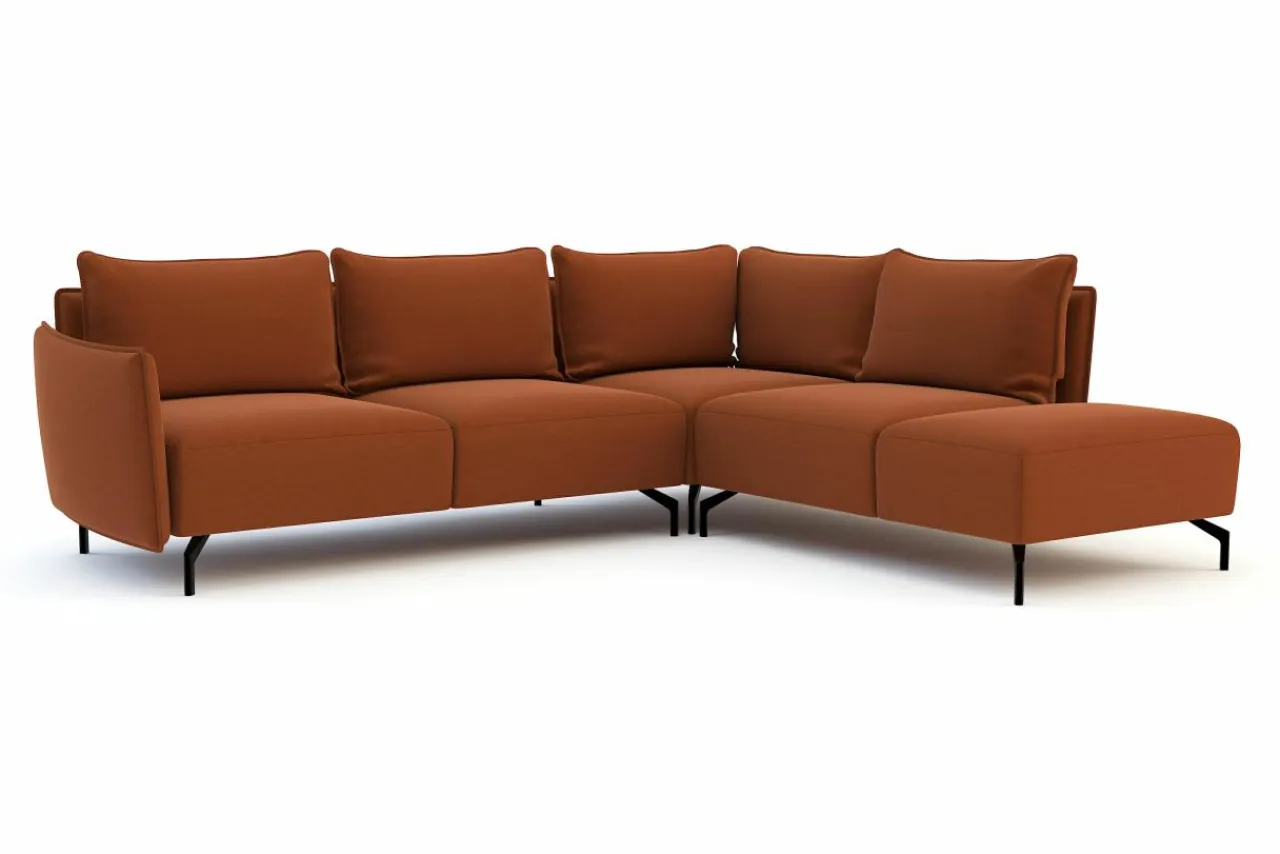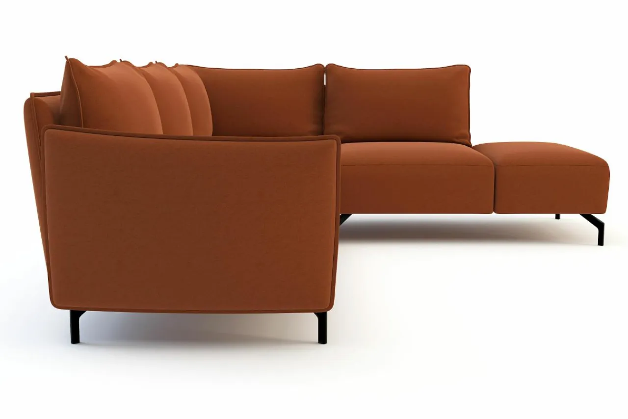 - Metalowe nóżki w czarnym kolorze świetnie pasują do nowoczesnego designu narożnika i dodają mu lekkości.