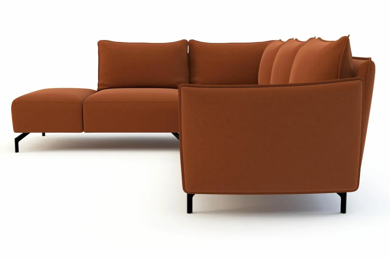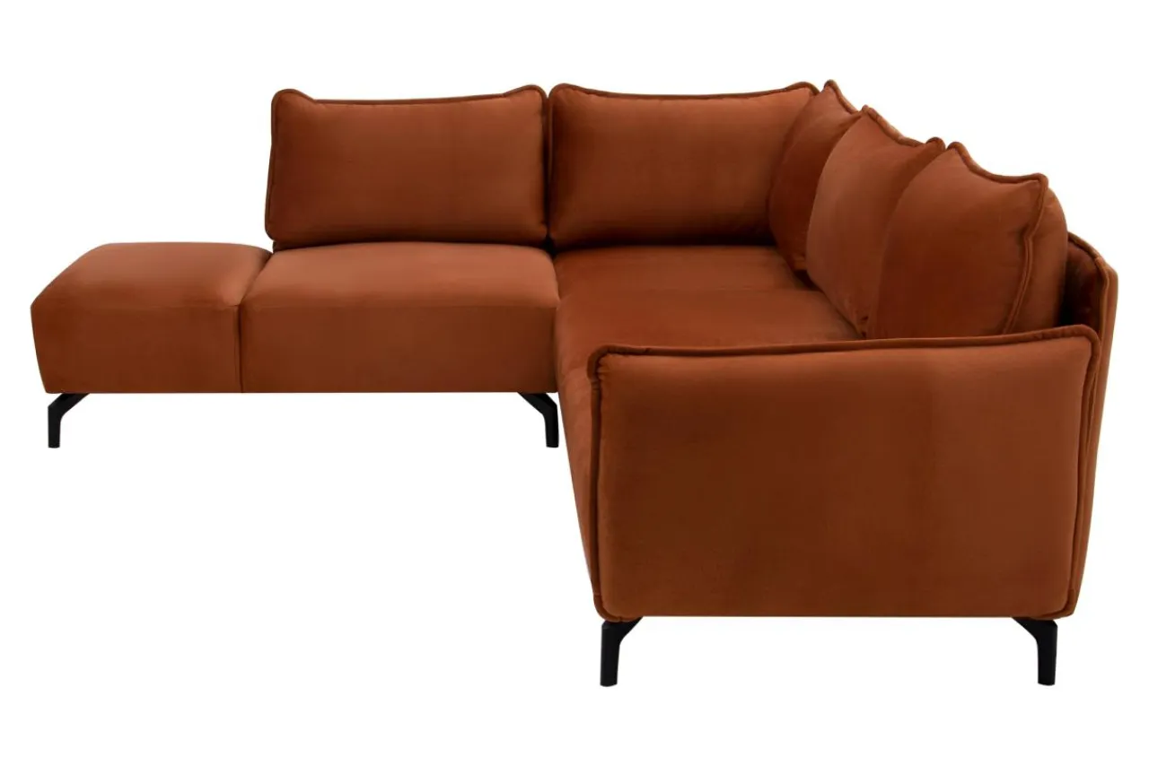 - Metalowe nóżki w czarnym kolorze świetnie pasują do nowoczesnego designu narożnika i dodają mu lekkości.
