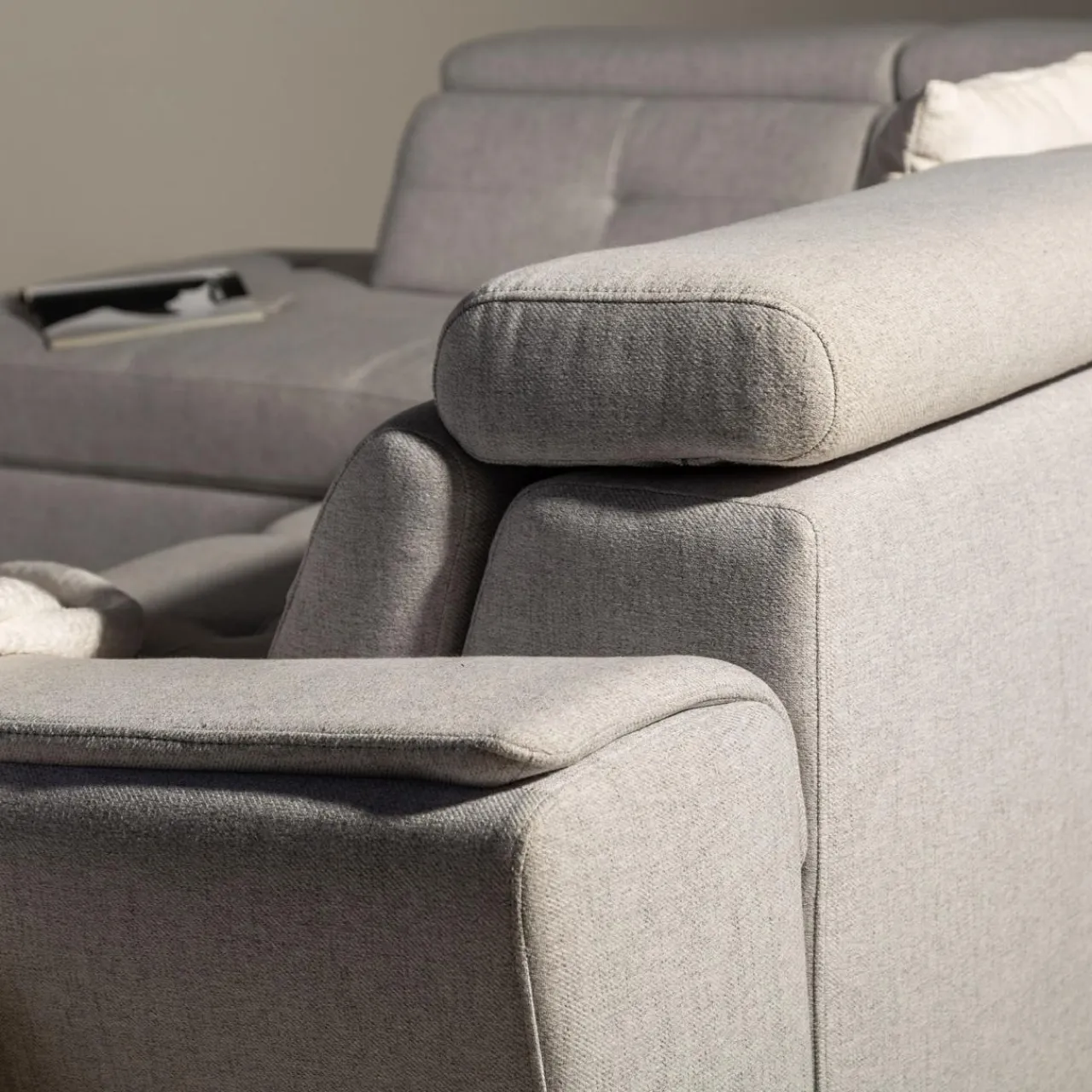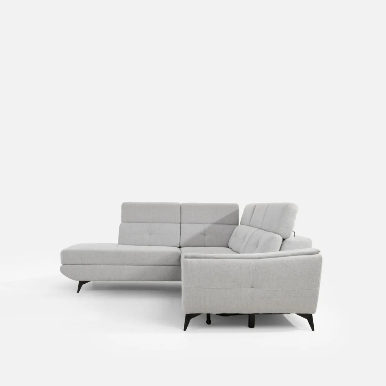 SERGIO to średniej wielkości narożnik wykończony w całości tkaniną NEVE w szarym kolorze.