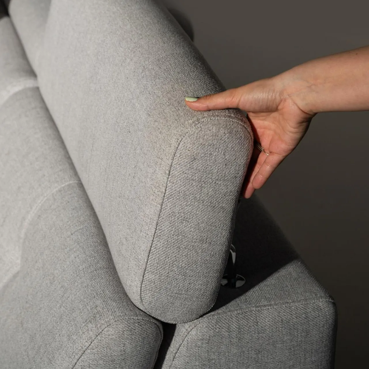 Jasnoszara tkanina ma strukturę plecionki, ale jest przyjemna w dotyku – zapewnia przyjemne doznania i elegancki wygląd.