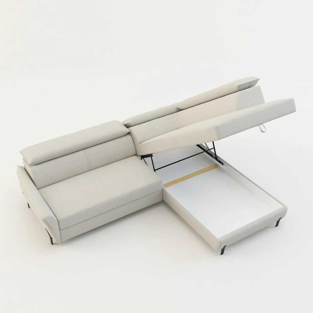 Stelaż pod siedziskiem wysuwamy i podnosimy za pomocą uchwytu. Mebel nie wymaga odsuwania od ściany. Idealny do okazjonalnego spania.