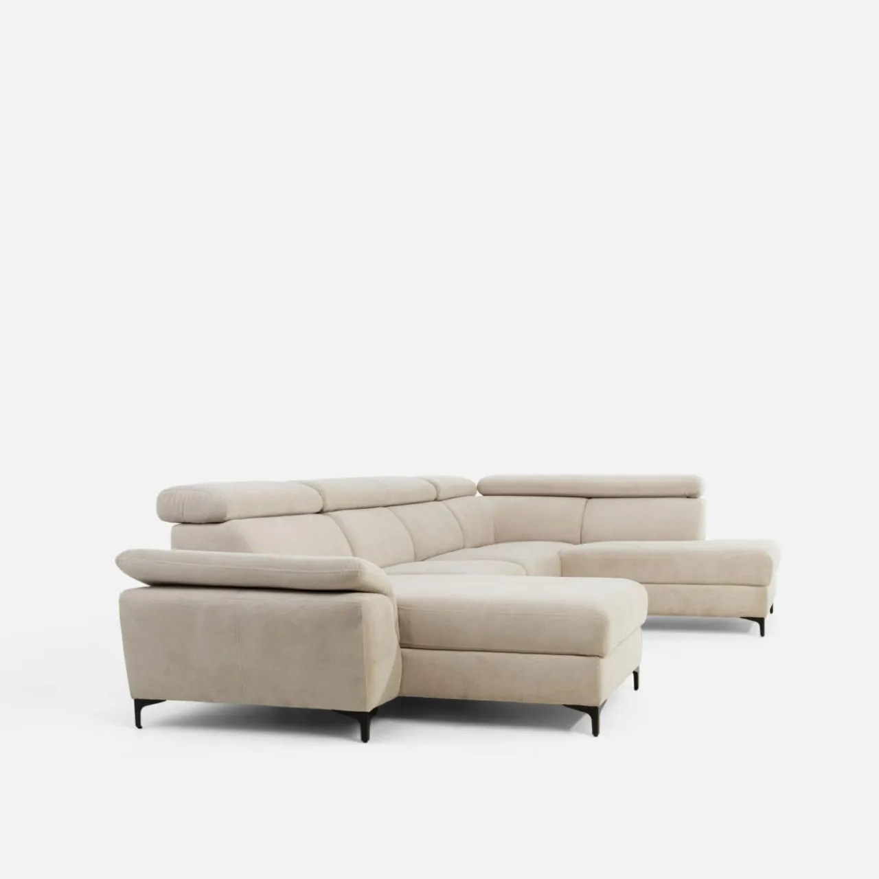 - Wysokie nóżki nadają lekkości, dzięki czemu narożnik nie przytłoczy wnętrza.