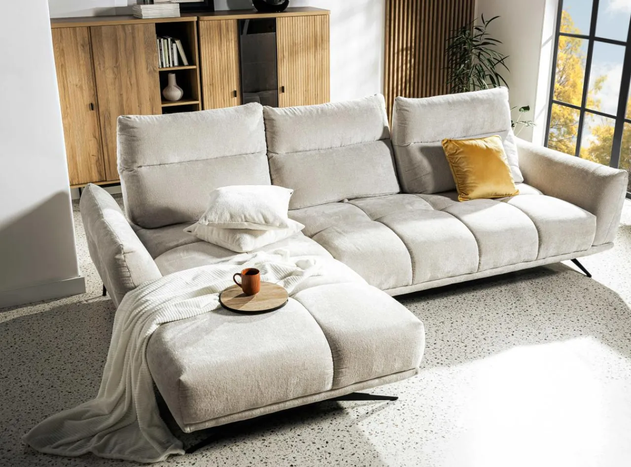 - Ozdobne przeszycia podkreślą estetykę narożnika ADILIO – postaw na nowoczesny design w centrum swojego salonu.