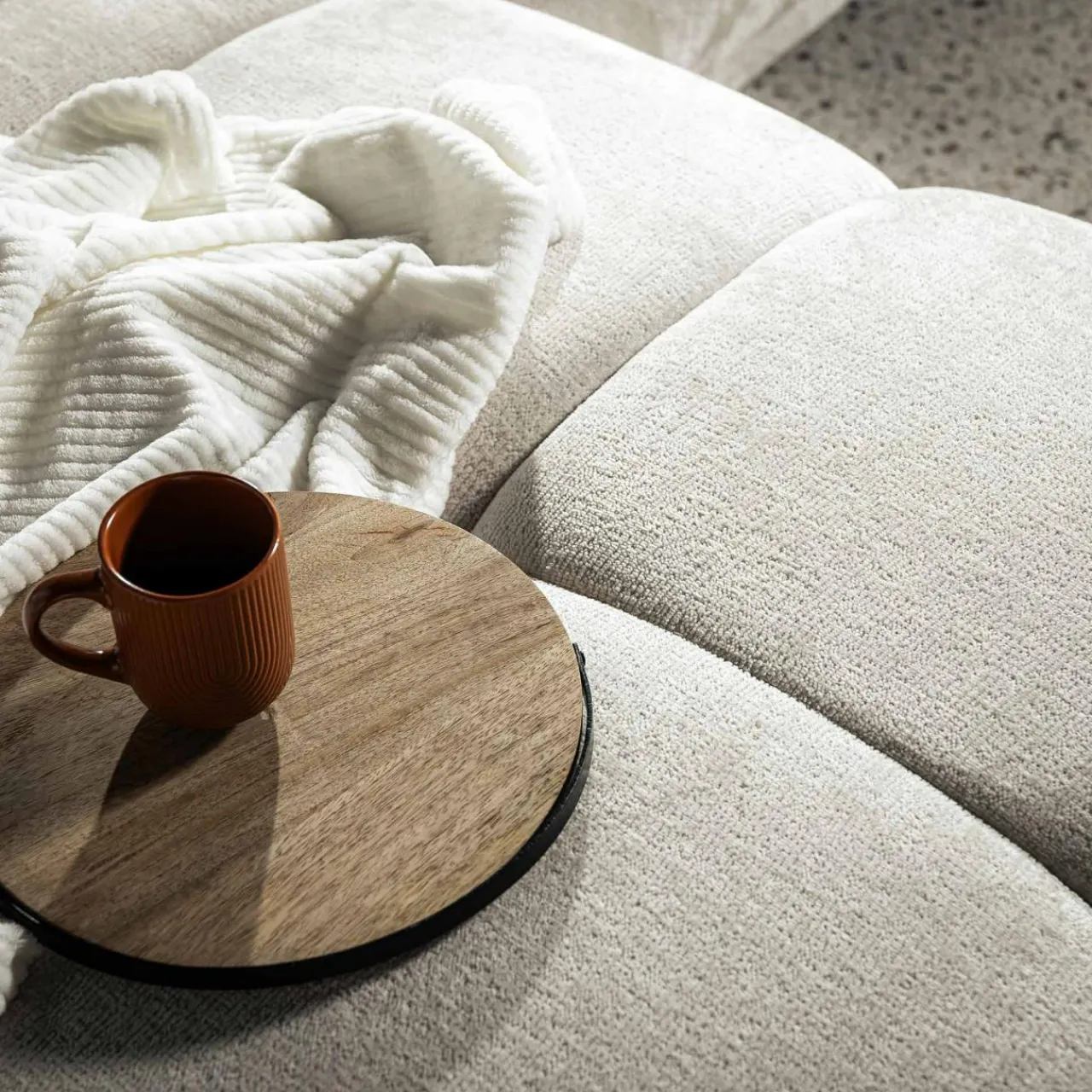 - Wygodne podłokietniki: lekko odgięte i wypełnione pianką zapraszają do odpoczynku – oprzyj się na nich z filiżanką aromatycznej herbaty.