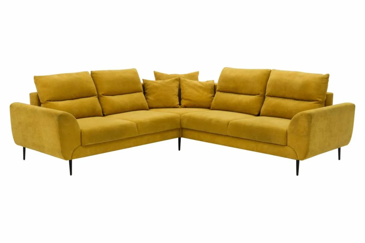 Poziome linie na poduszkach pełnią rolę nie tylko wizualną, ale przede wszystkim zwiększają ergonomię podparcia i zapobiegają migracji pianek. Element rogowy wypełniony trzema poduszkami dekoracyjnymi pozwala na tworzenie różnych aranżacji.