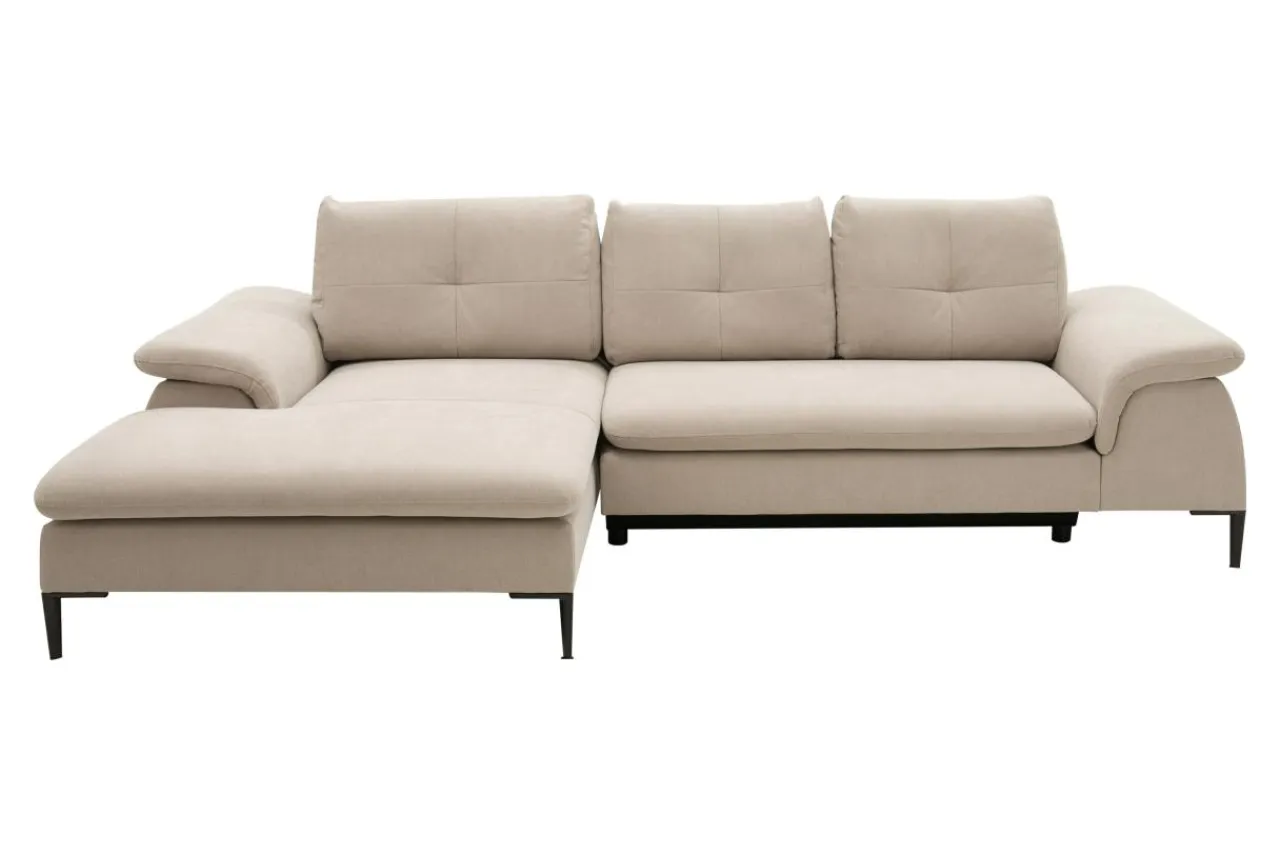 - Narożnik OZZY wykończono szenilową tkaniną MOLY w beżowym kolorze.