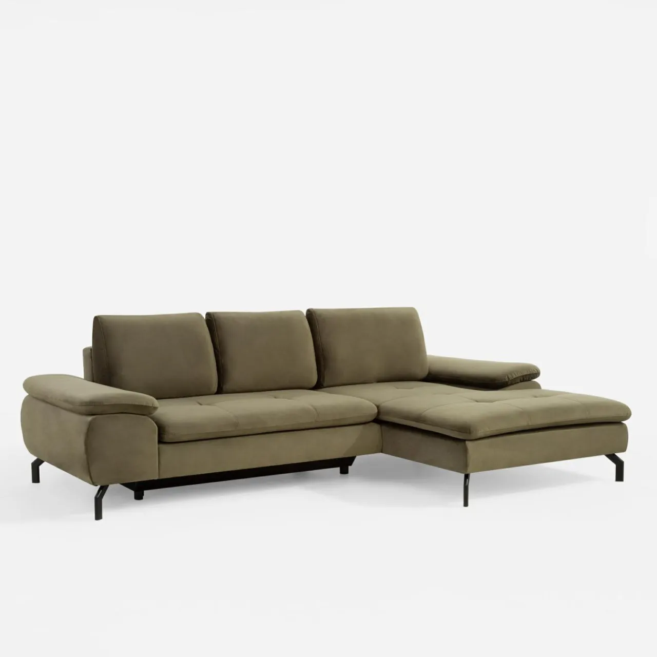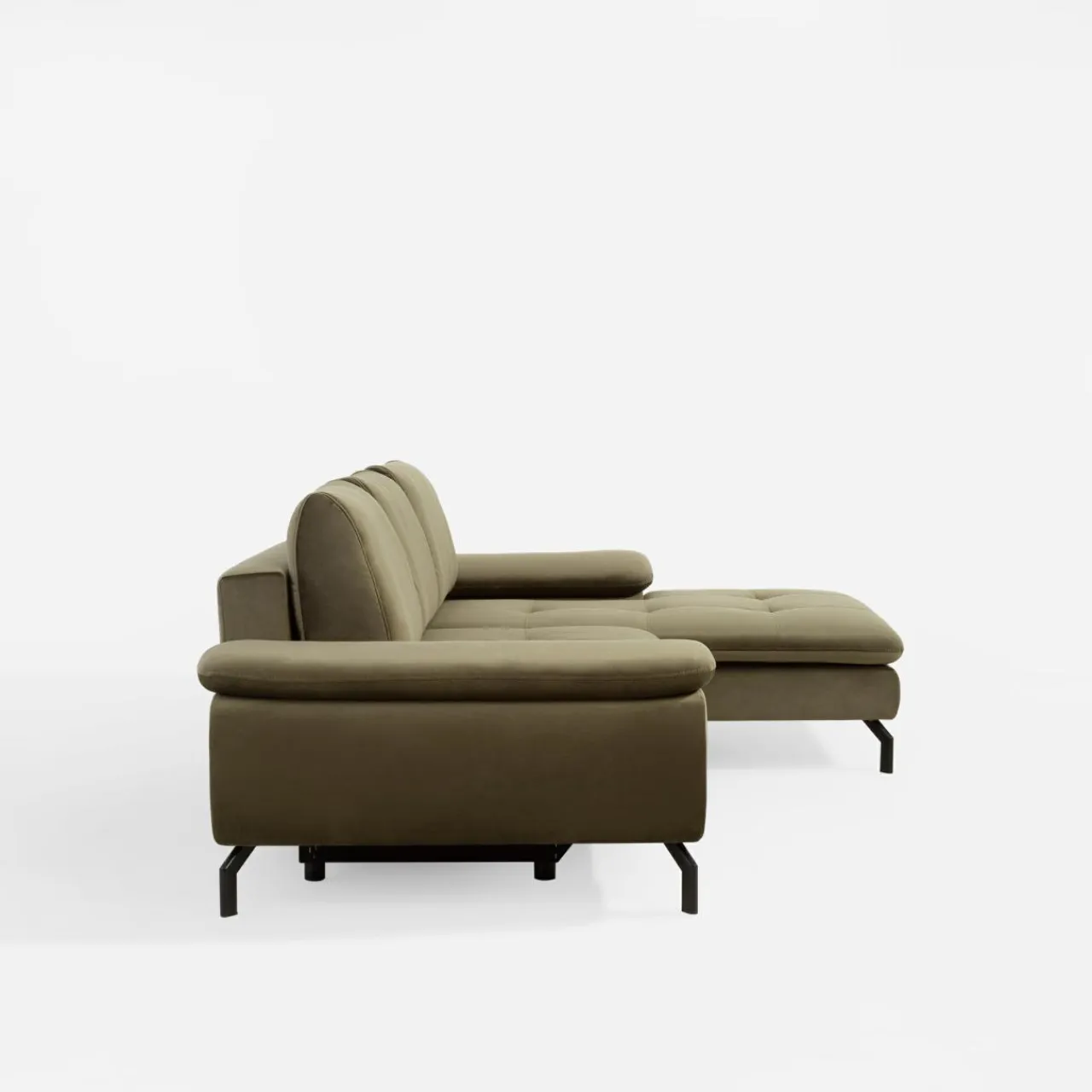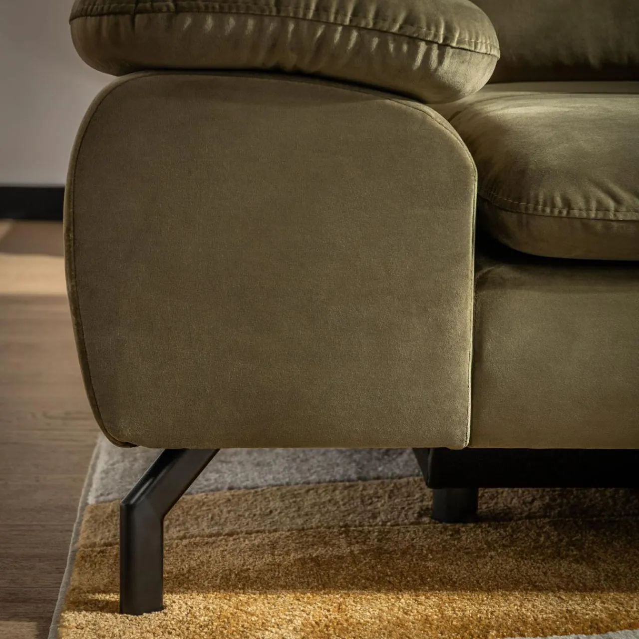 Na siedząco czy na leżąco? Wypoczywaj na narożniku VESPA w sposób, który Ci odpowiada. VESPA doskonale wpasuje się w różne wnętrza, wnosząc do naturalny odcień oliwkowej zieleni.