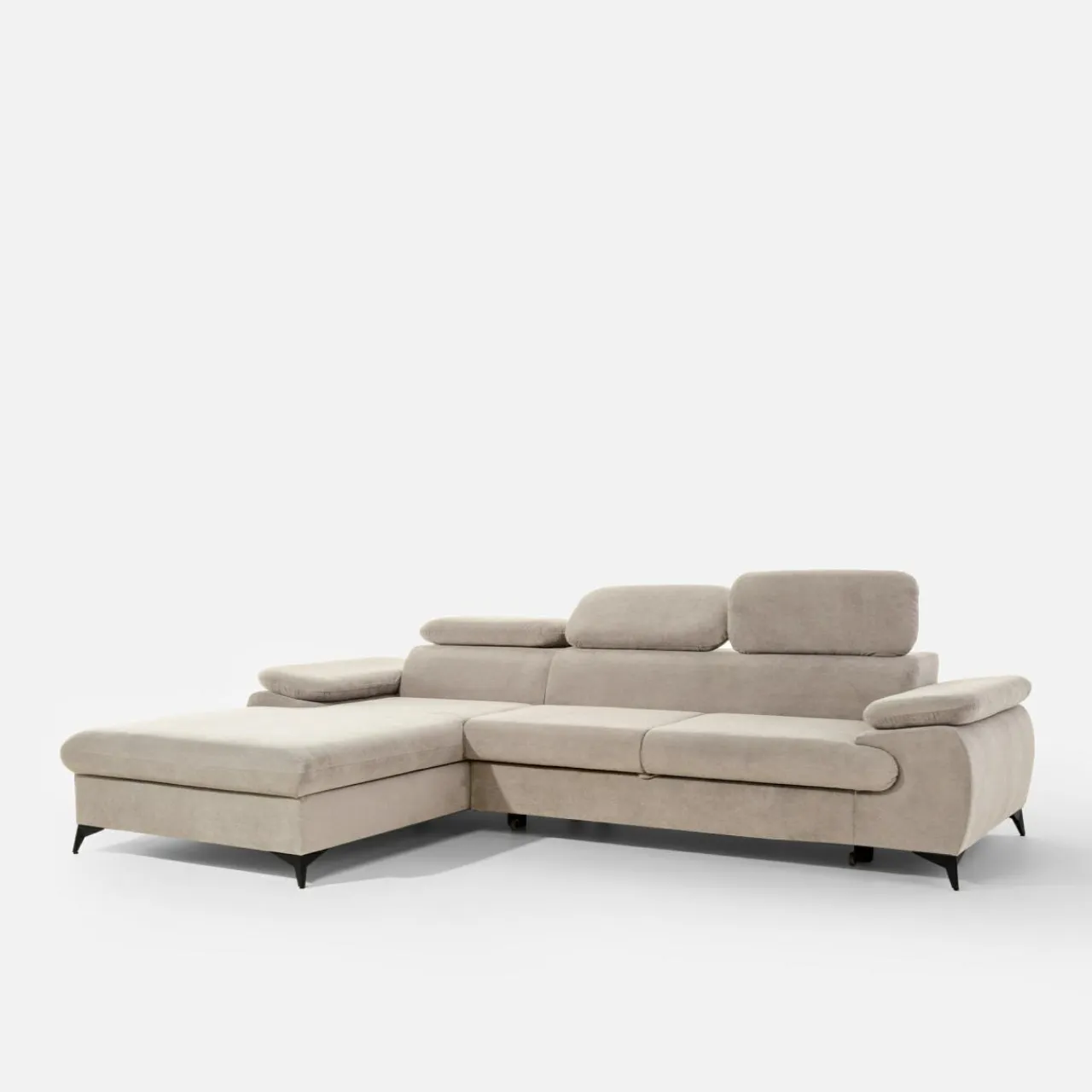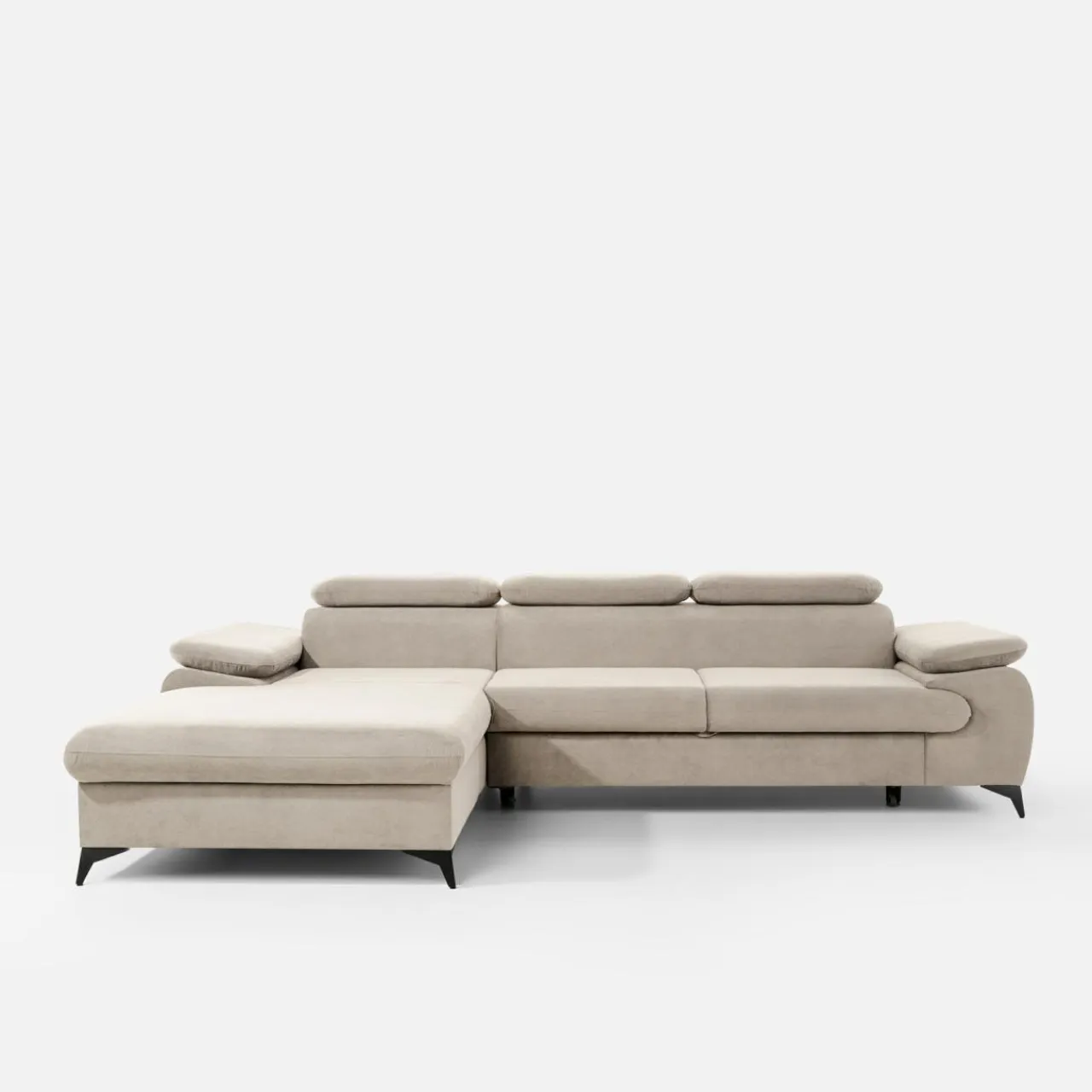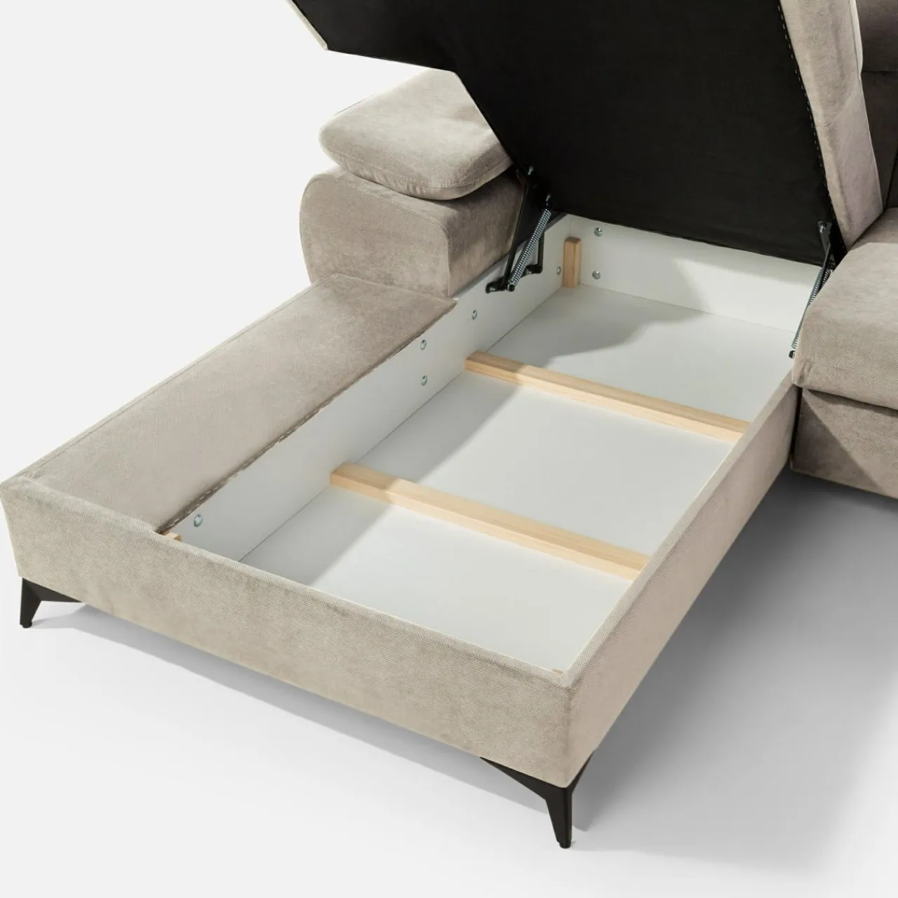 Jeśli szukasz narożnika, który zapewni wygodne miejsce do spania, przestrzeń do przechowywania i wprowadzi ciepły, elegancki akcent do Twojego salonu, narożnik SCALA w odcieniu beżowym to idealny wybór. Jego jasny kolor doskonale komponuje się z różnorodnymi aranżacjami wnętrz, szczególnie w stylu nowoczesnym, klasycznym czy skandynawskim.
