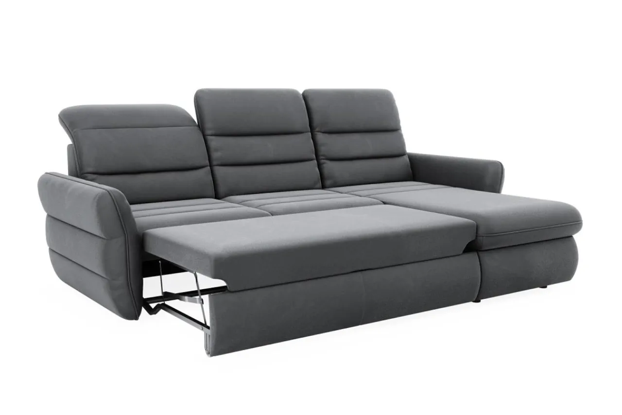 Mechanizm rozkładania typu delfin pozwala szybko i bezproblemowo rozłożyć mebel pod kątem dłuższego wypoczynku.