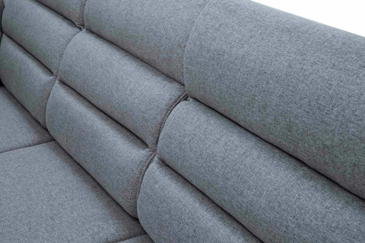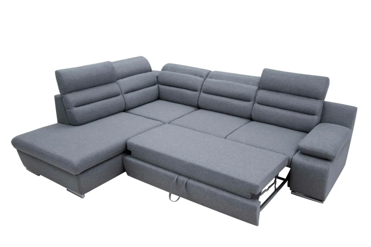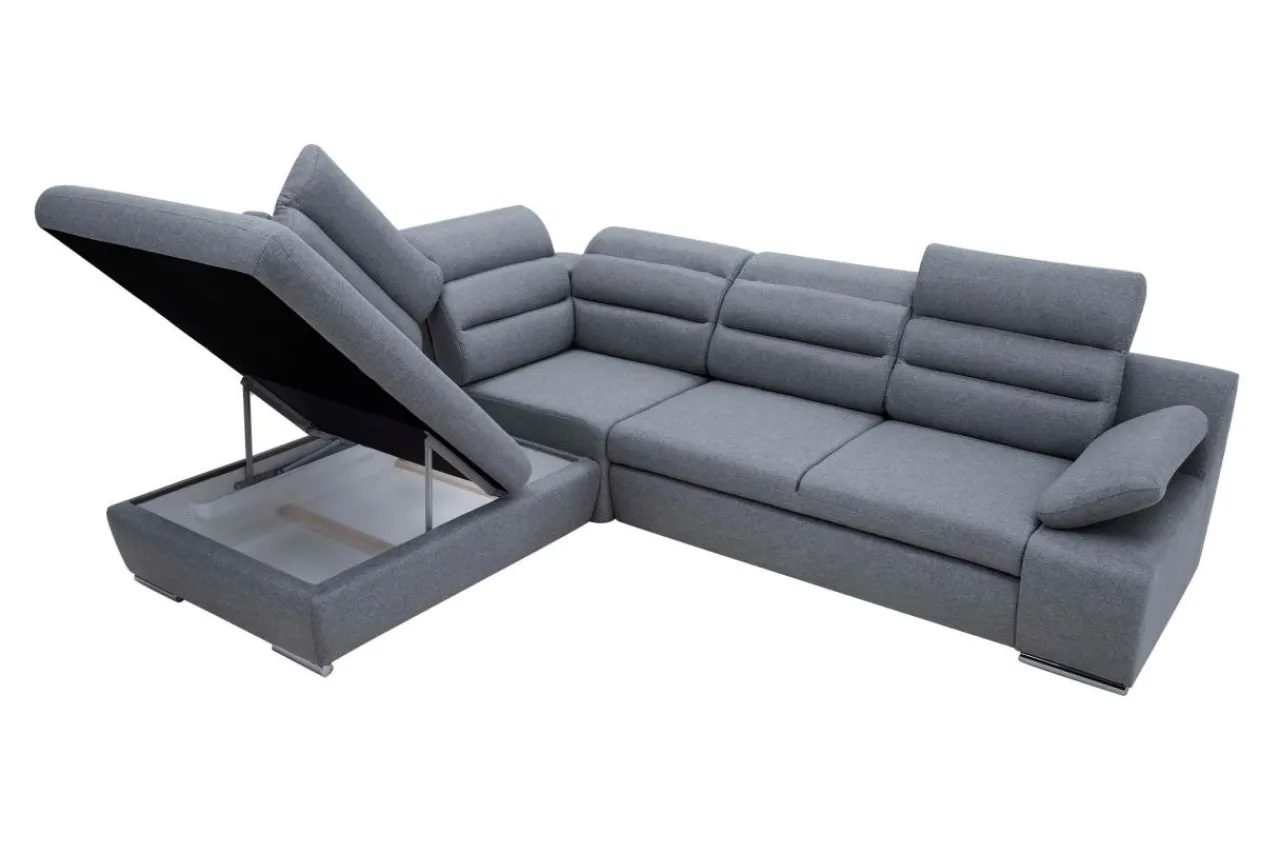 - Pojemnik na pościel znajduje się w otomanie. Dzięki temu otwierasz tylko jedną część narożnika, aby sięgnąć po pościel, koce lub inne tekstylia.