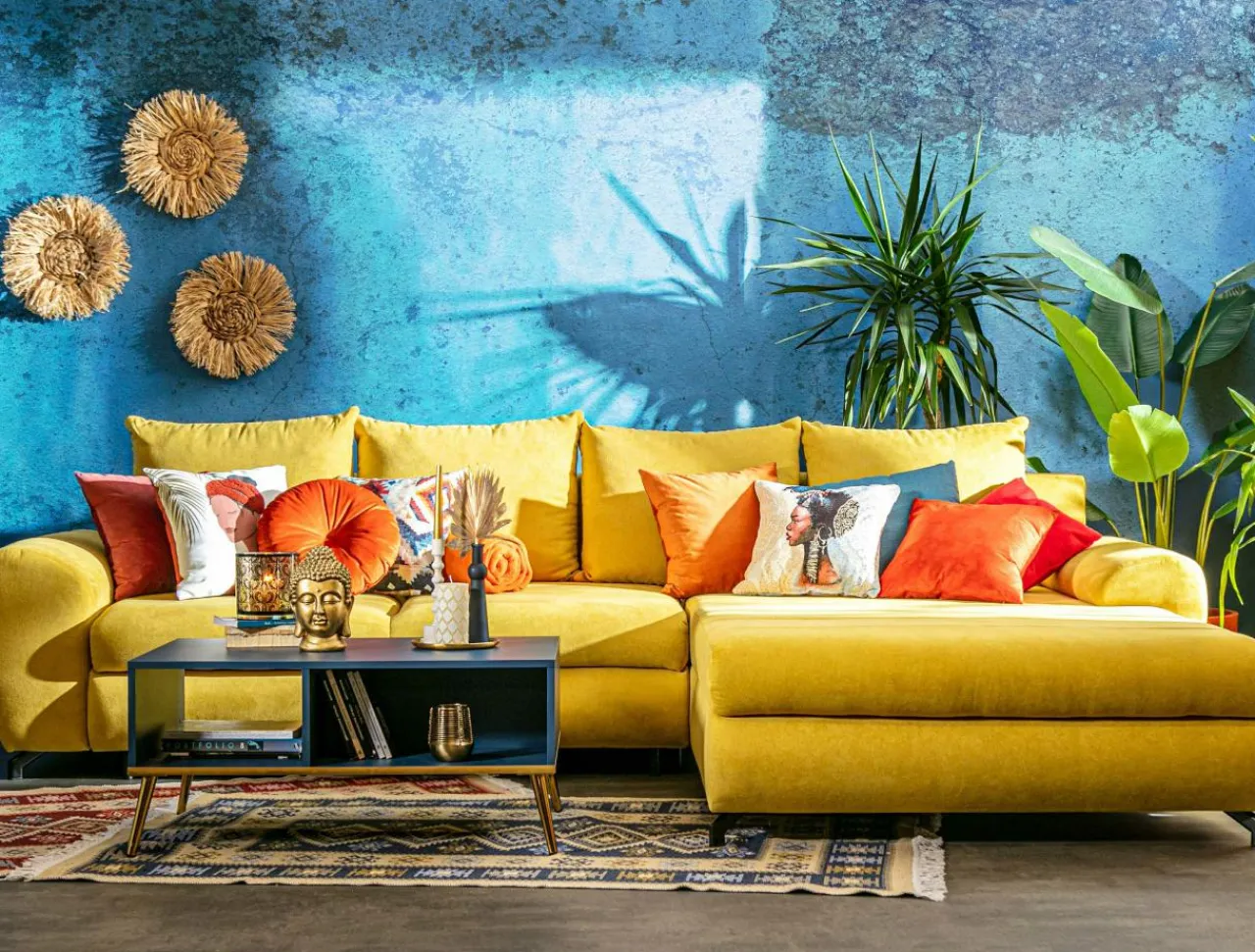 Narożnik pokryty jest miękką i miłą w dotyku tkaniną SORO. Przednie nóżki są metalowe, nóżki pomocnicze pod meblem są wykonane z tworzywa.