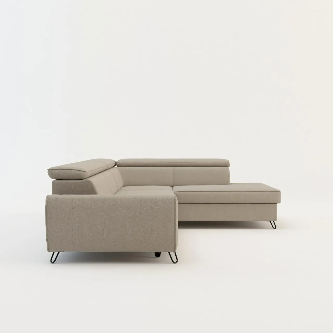 - Narożnik posiada 3 regulowane zagłówki na całej długości narożnika, dzięki czemu każdy z gości może usiąść równie komfortowo.