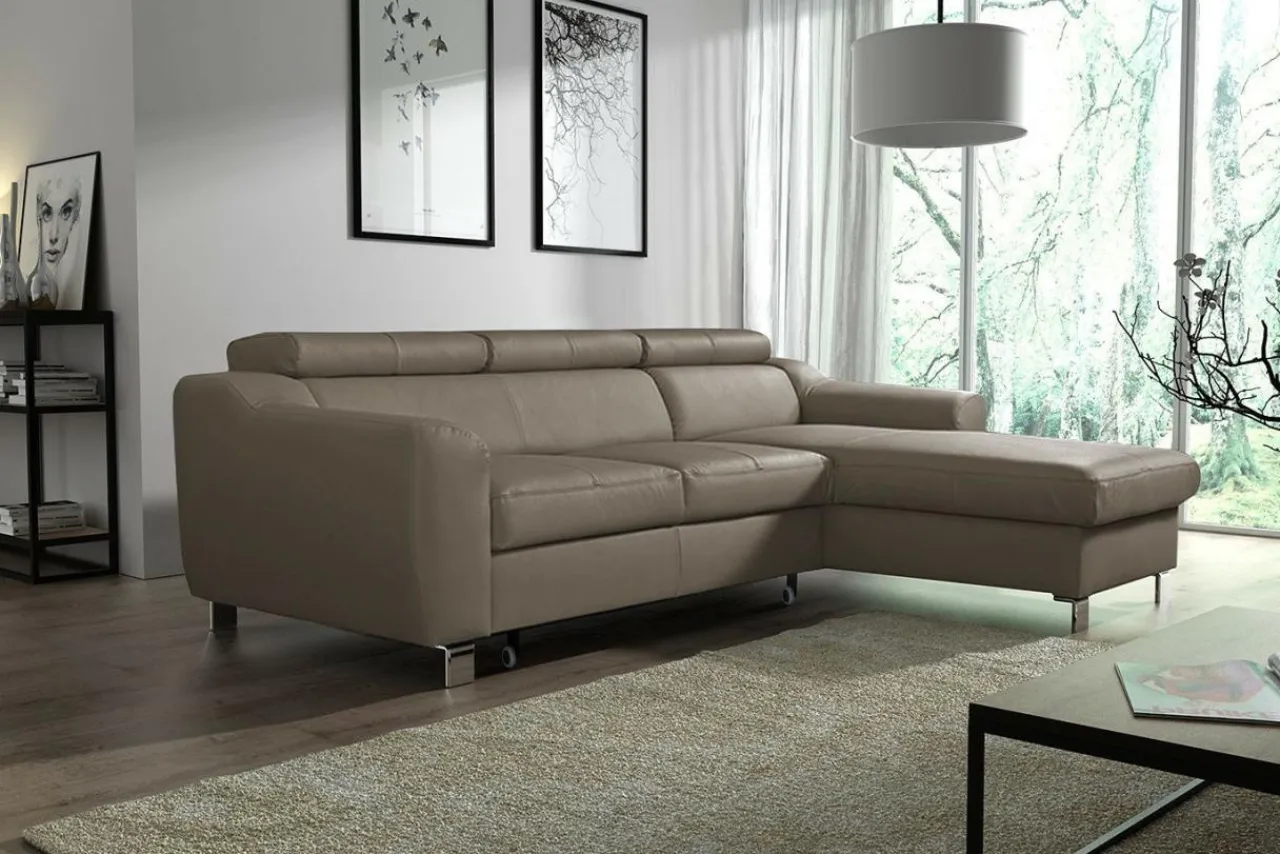 Elementy narożnika, z którymi mamy styczność siedząc, zostały wykończone skóra naturalną, pozostałe elementy obszyto skórą ekologiczną, dzięki temu cena jest atrakcyjniejsza, a wizualnie narożnik nie traci swoich walorów.