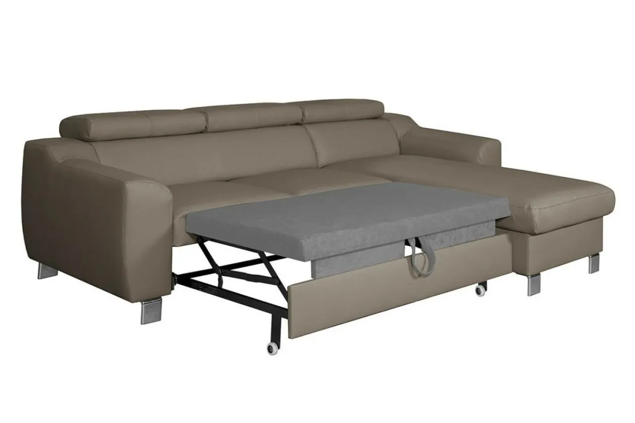 Stelaż pod siedziskiem wysuwamy i podnosimy za pomocą uchwytu. Mebel nie wymaga odsuwania od ściany. Idealny do okazjonalnego spania.