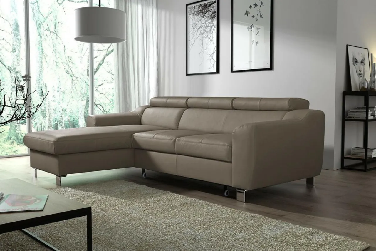 Elementy narożnika, z którymi mamy styczność siedząc, zostały wykończone skóra naturalną, pozostałe elementy obszyto skórą ekologiczną, dzięki temu cena jest atrakcyjniejsza, a wizualnie narożnik nie traci swoich walorów.