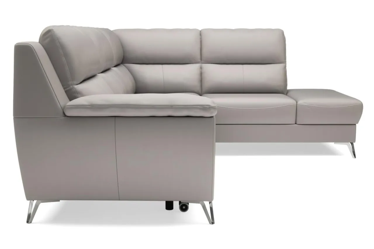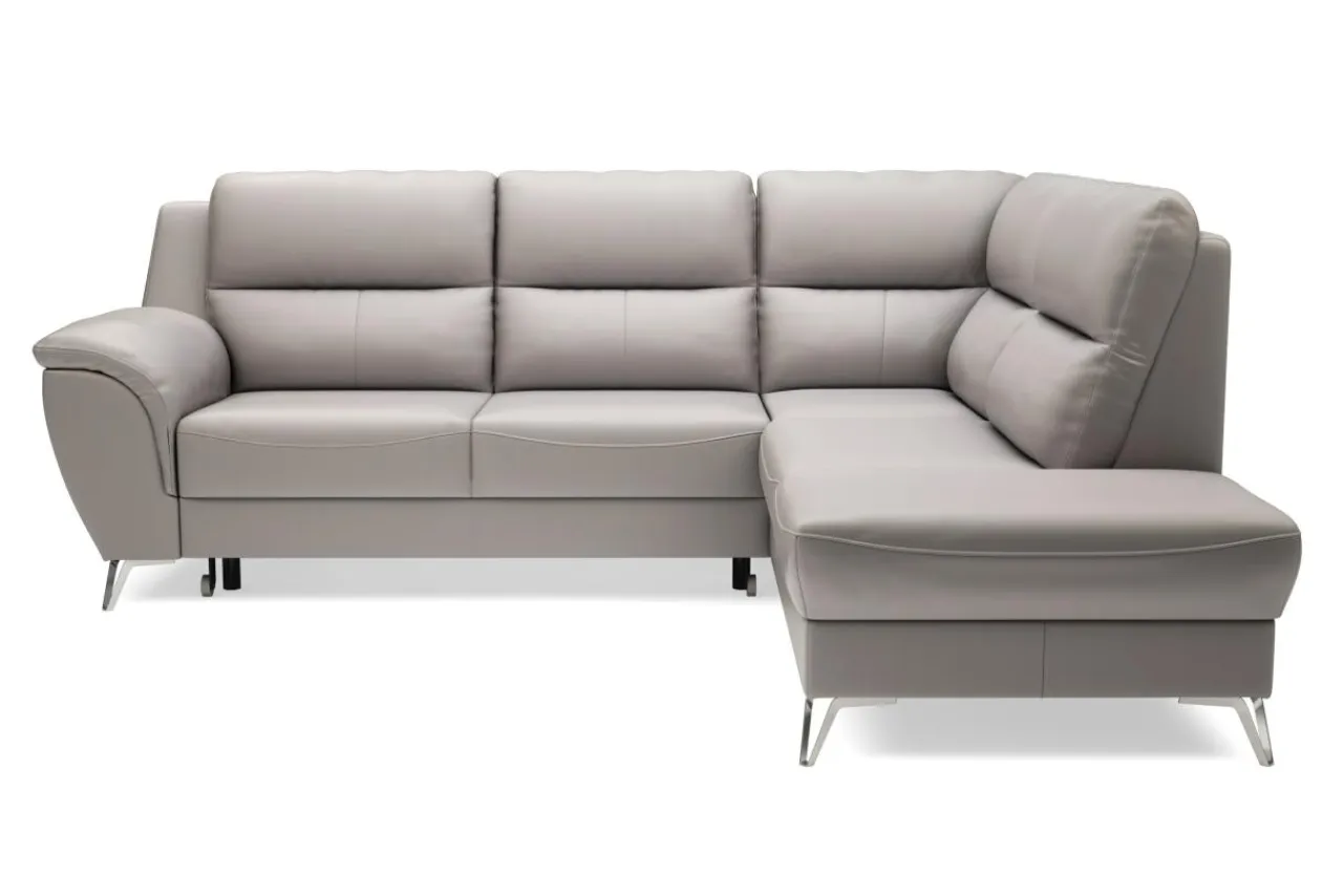 Rolę dekoracyjną w narożniku odgrywają metalowe, chromowane nóżki, a przede wszystkim skóra naturalna, która sprawia, że mebel wygląda bardzo dobrze.
