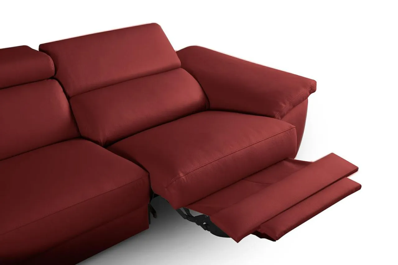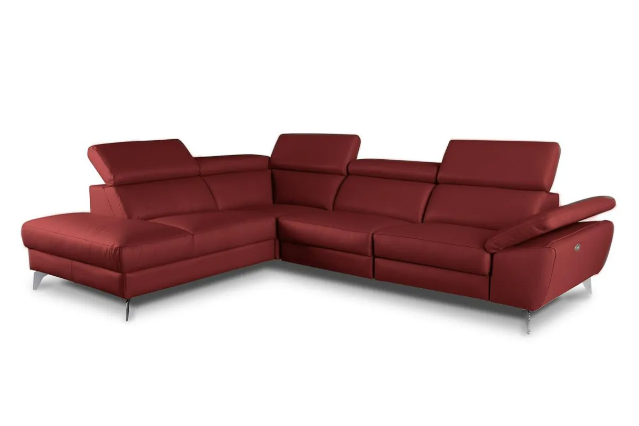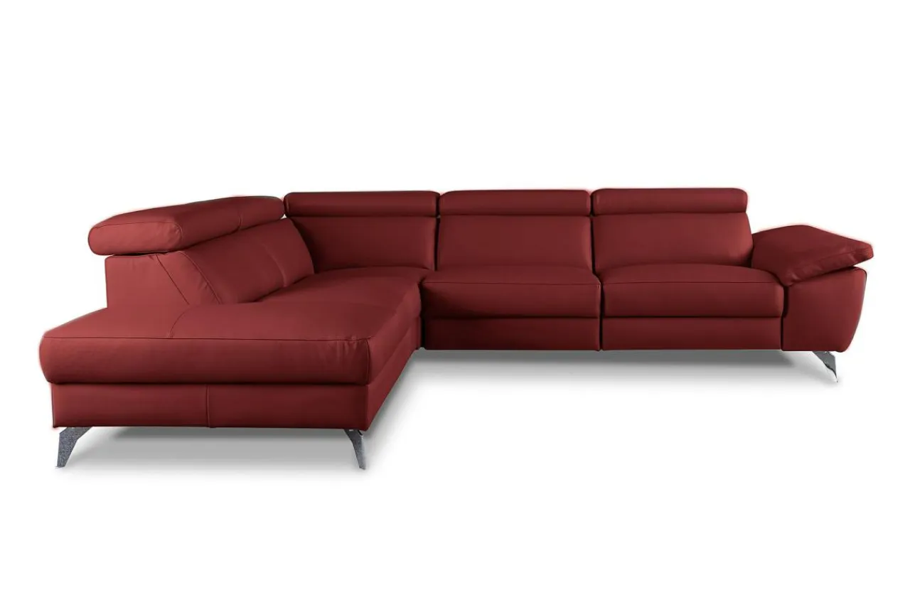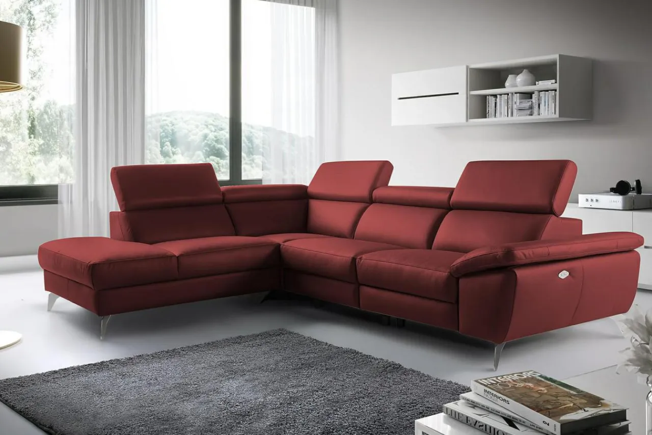 Narożnik została pokryty skórą naturalną z kolekcji DOLLARO w odcieniu RED. Metalowe nóżki podkreślają nowoczesny charakter narożnika i nadają mu nieco smukłości.