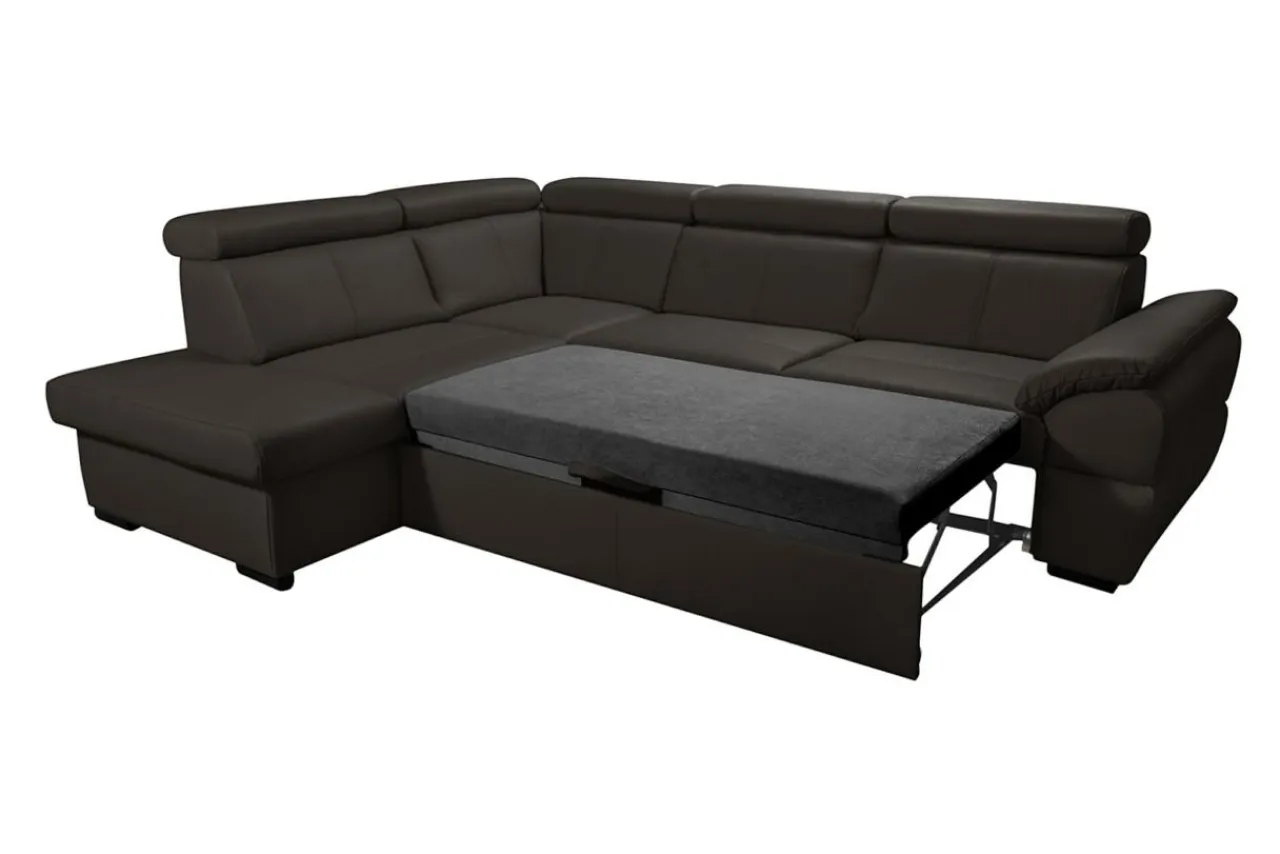 - Istnieje możliwość rozłożenia części narożnika. Dzięki mechanizmowi typu delfin zyskasz powierzchnię spania o wymiarach 124×189 cm.