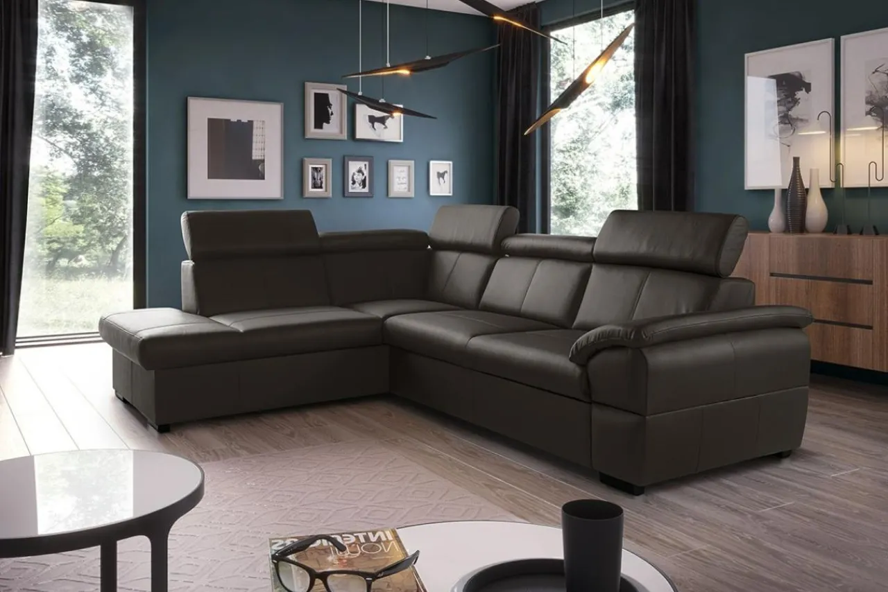 Brązowy narożnik ze skóry naturalnej to idealny wybór do eleganckich wnętrz. Ustaw go w centralnym miejscu pokoju dziennego, a będzie prawdziwą wizytówką domu.
