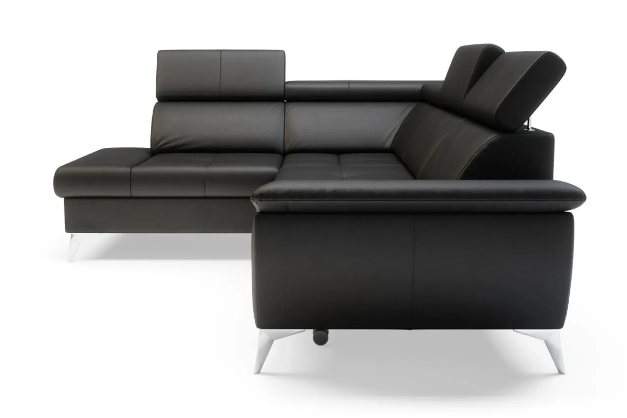 - Wykończone skórą naturalną plecy narożnika umożliwiają ustawienie go w centralnej części pomieszczenia.