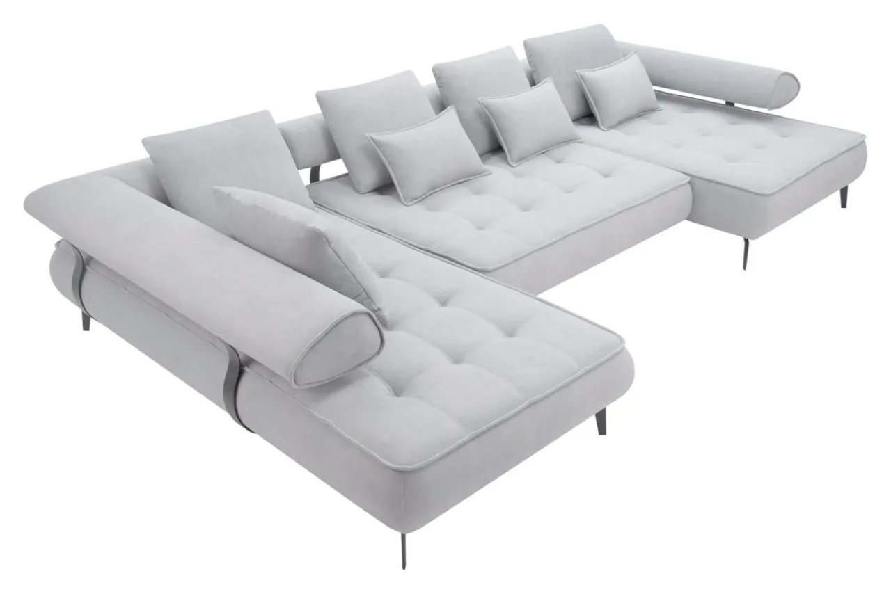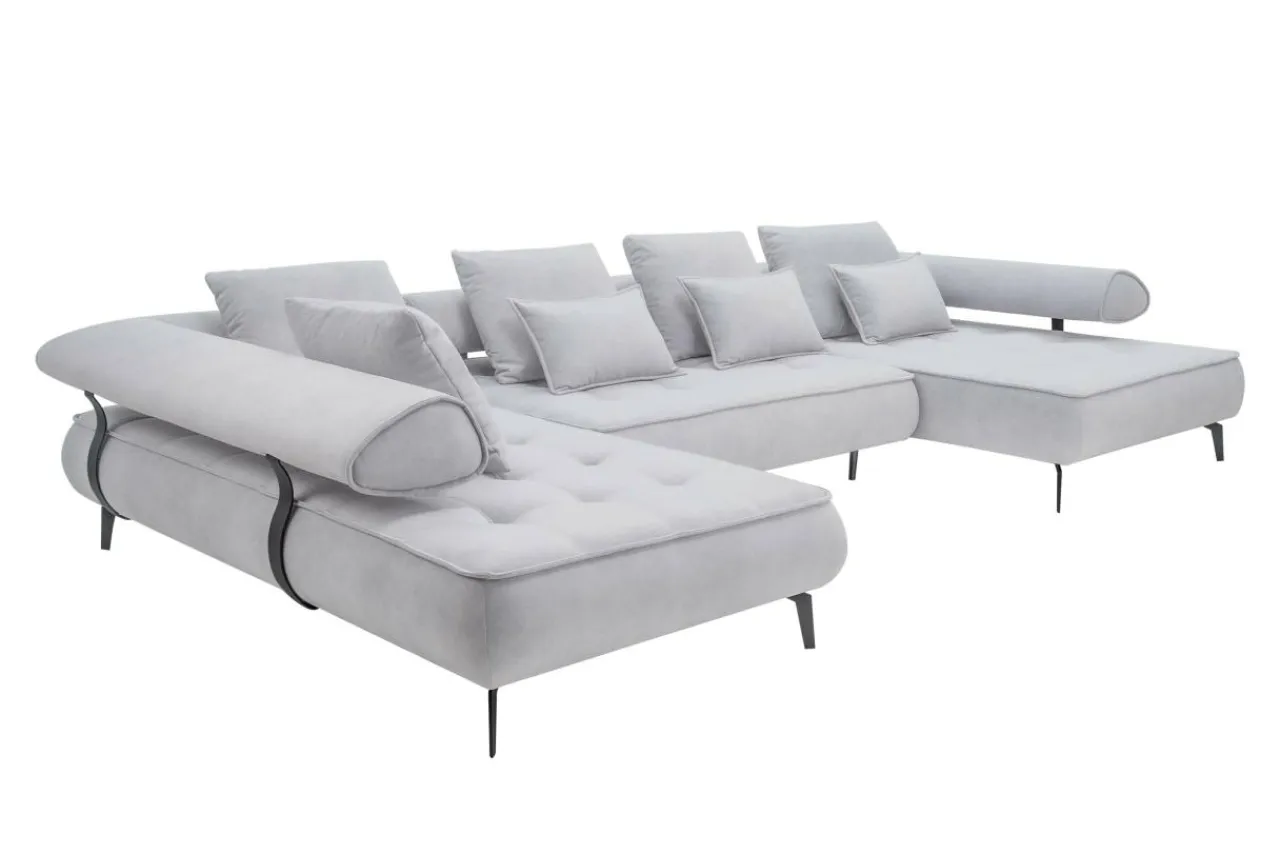 Został zaprojektowany z myślą o przestronnych i nowoczesnych wnętrzach. Duży narożnik w kształcie litery U pozwoli Ci wydzielić strefy w pokoju dziennym, oddzielając część jadalnianą od wypoczynkowej.
