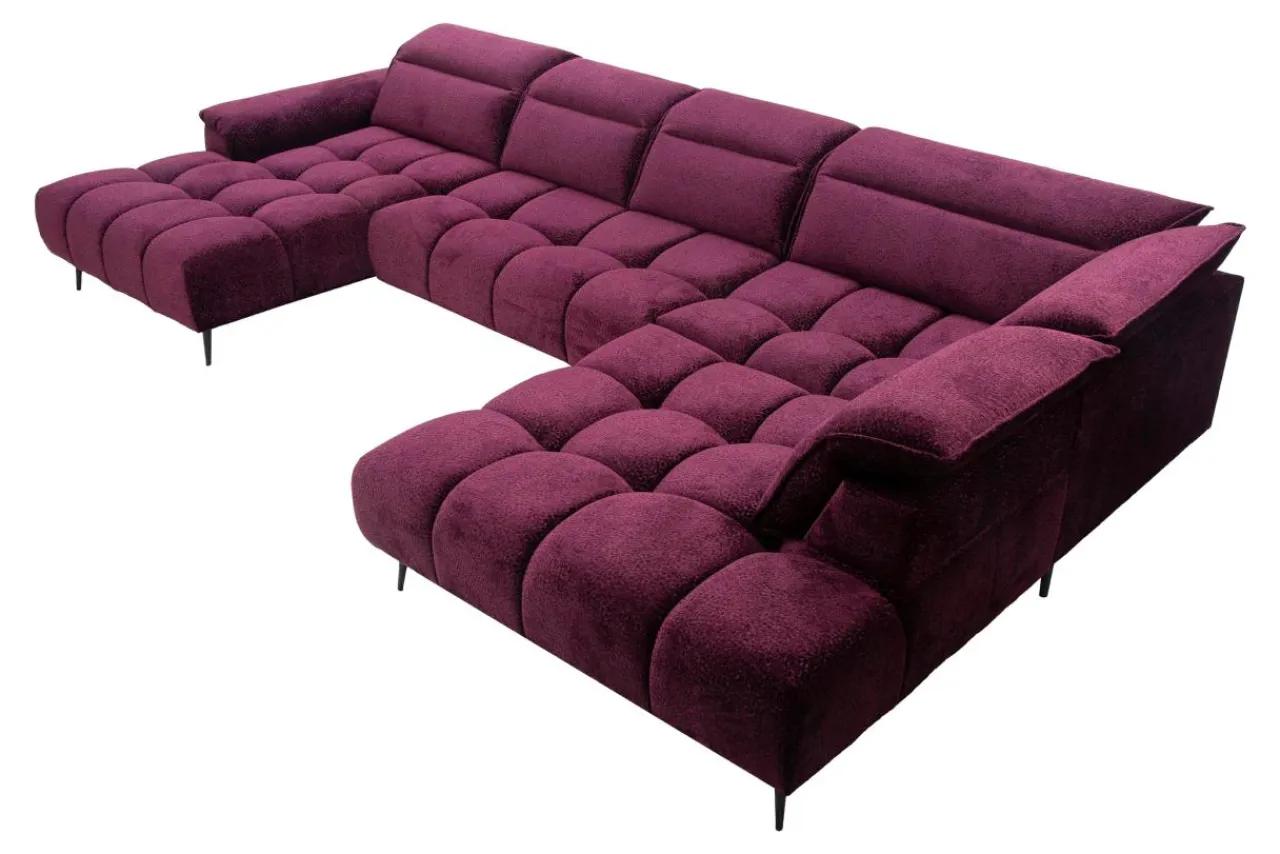 Narożnik w kształcie litery U postawiony jest na wysokich, lekko ukośnych nóżkach. Dzięki temu bryła, mimo pokaźnych rozmiarów, nabiera lekkości.