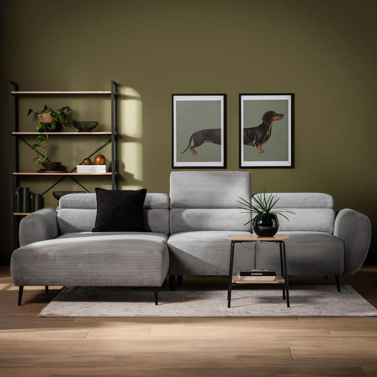 - Sztruksowa tkanina nada wnętrzu przytulnego wyrazu.