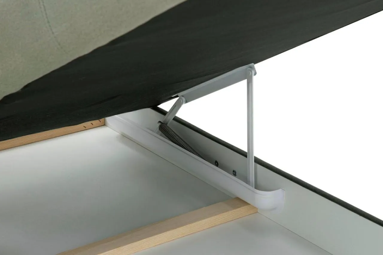 Schowek znajduje się w tzw. otomanie. Można się do niego dostać podnosząc wierzchnią część mebla. Jest pojemny i zapewnia komfortowe pakowanie pościeli.