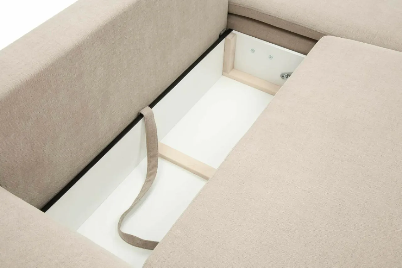 - Pojemnik pod siedziskiem pomieści pościel i dodatkowe koce lub ozdobne poduszki.
