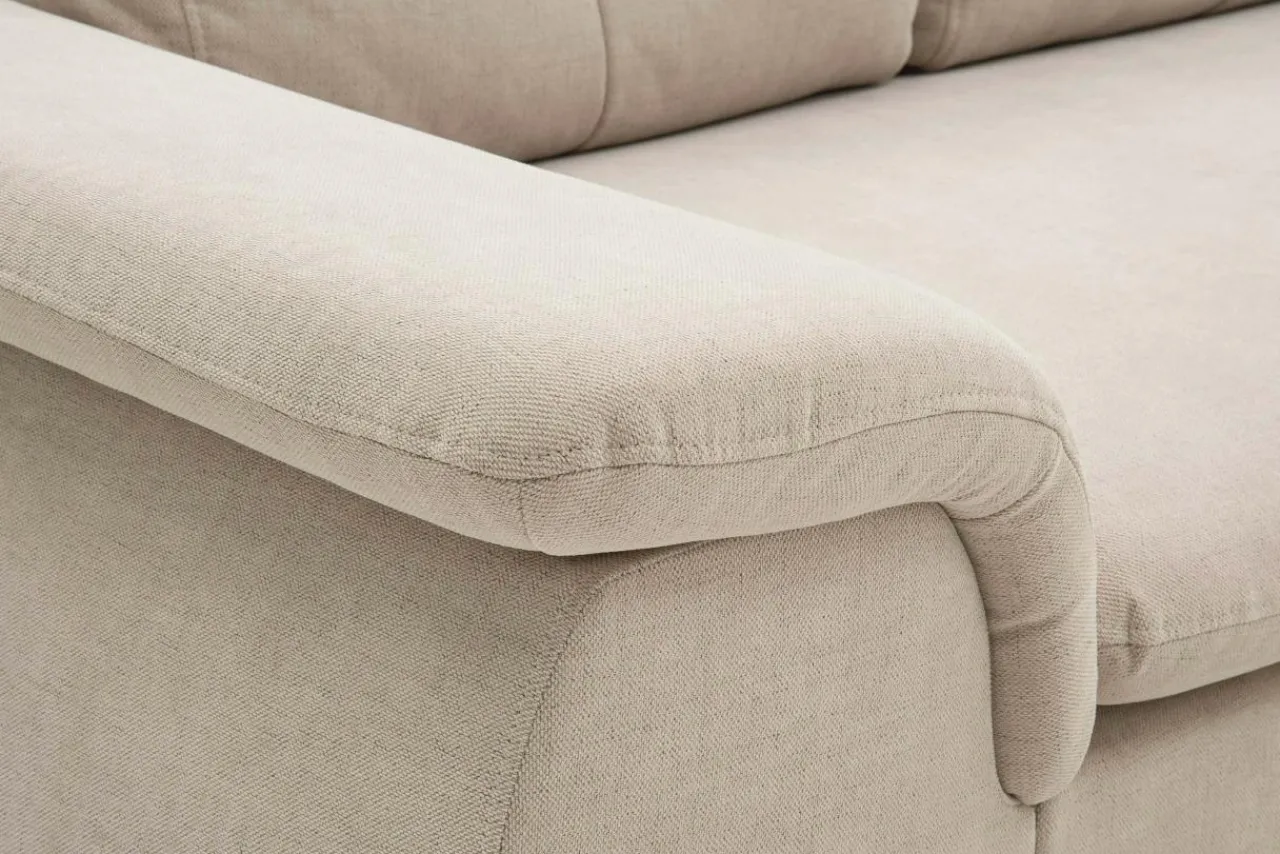 - Narożnik OZZY wykończono szenilową tkaniną MOLY w beżowym kolorze.