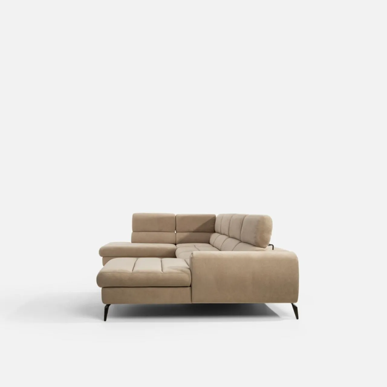 - Wysokie nóżki wysmuklają narożnik, co nadaje mu lekki wygląd.