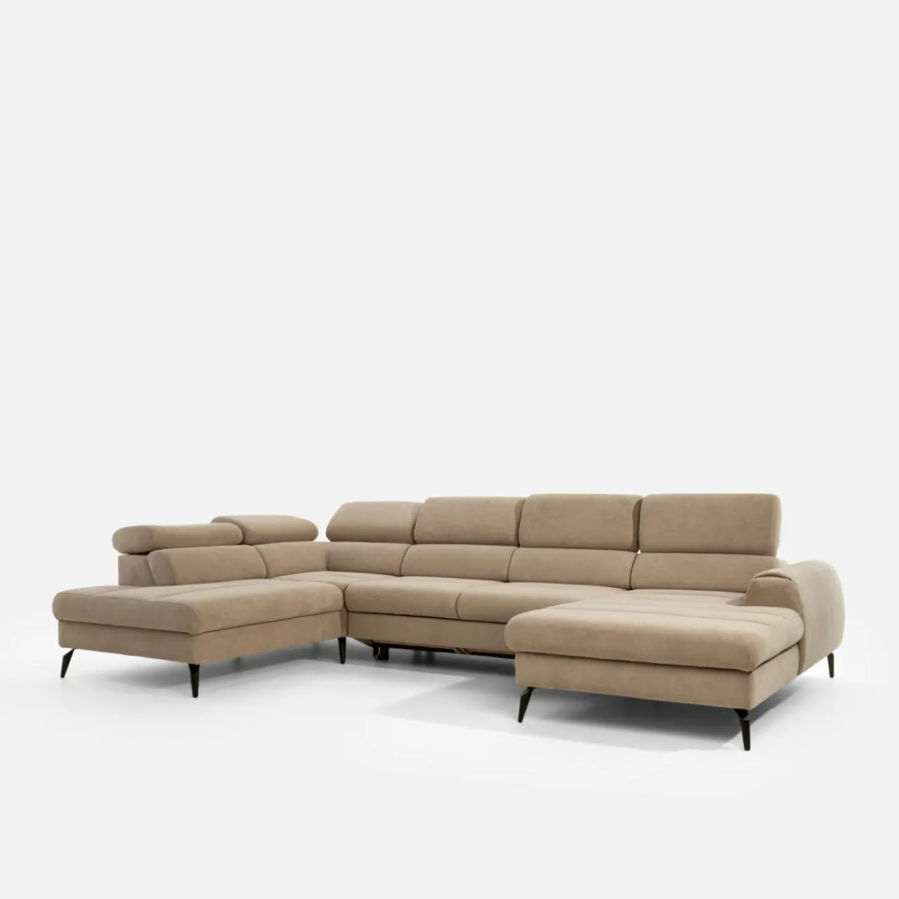 Narożnik JAZZY U2 posiada 2 leżanki, dzięki czemu będzie świetnie prezentować się w przestronnym salonie. Docenisz go za regulowane zagłówki i hydrofobową tkaninę – to idealny duet na rodzinne spotkania.