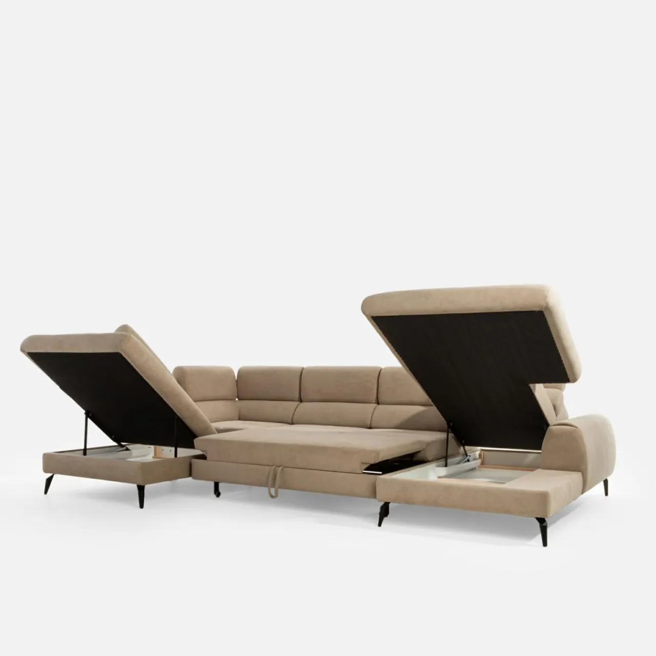 - Pojemnik w leżance to dodatkowa przestrzeń na pościel i inne domowe tekstylia – możesz z niego korzystać, nawet jeśli narożnik będzie rozłożony.