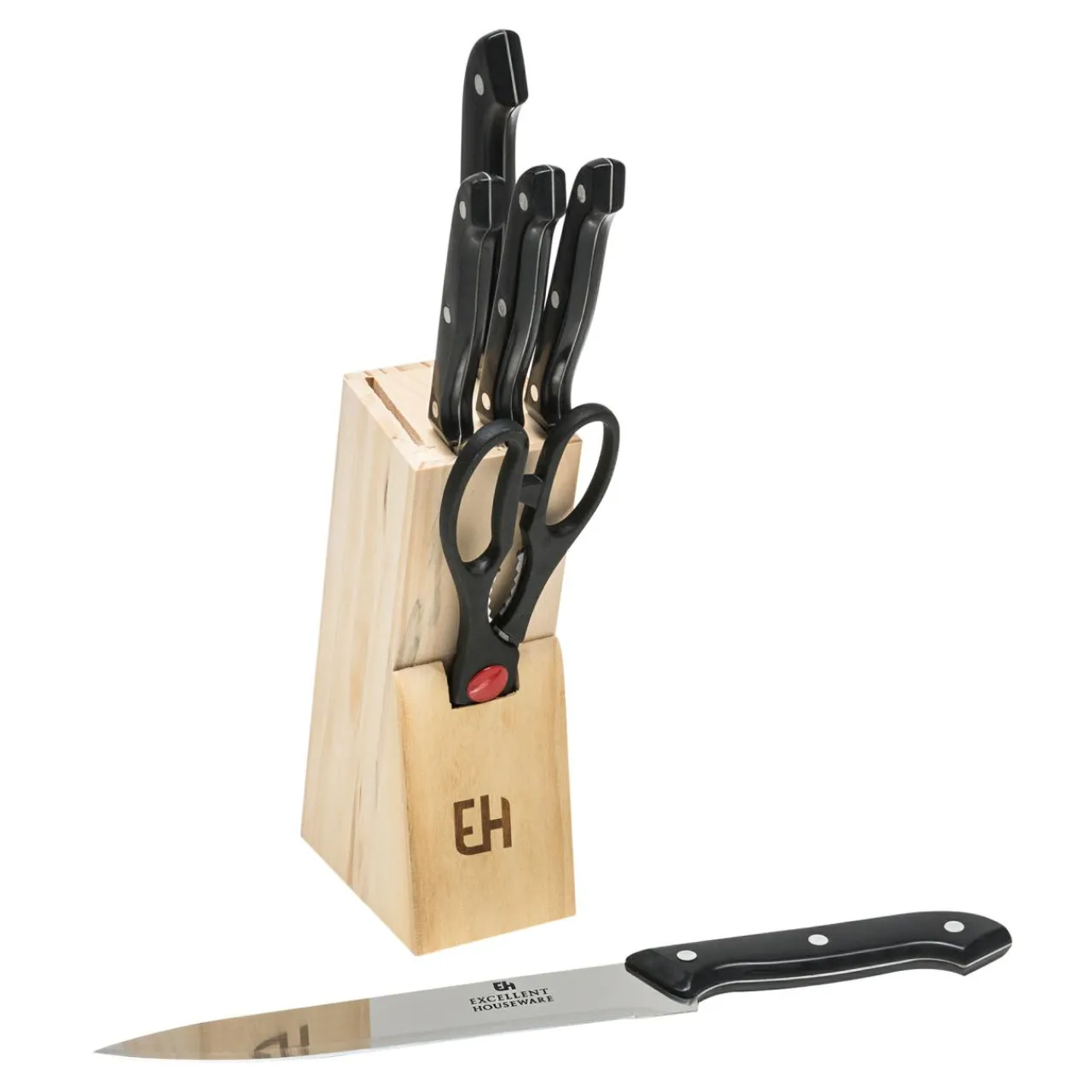 - Noże są schowane bezpiecznie w drewnianym bloku. Zminimalizujesz ryzyko skaleczenia.