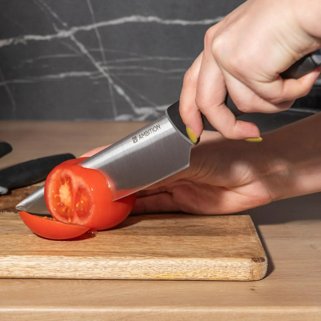 Nóż o długości ostrza 9 cm nadaje się do krojenia warzyw i owoców. Doskonale sprawdzi się na co dzień, rozwiązując każde powierzone mu zadanie.