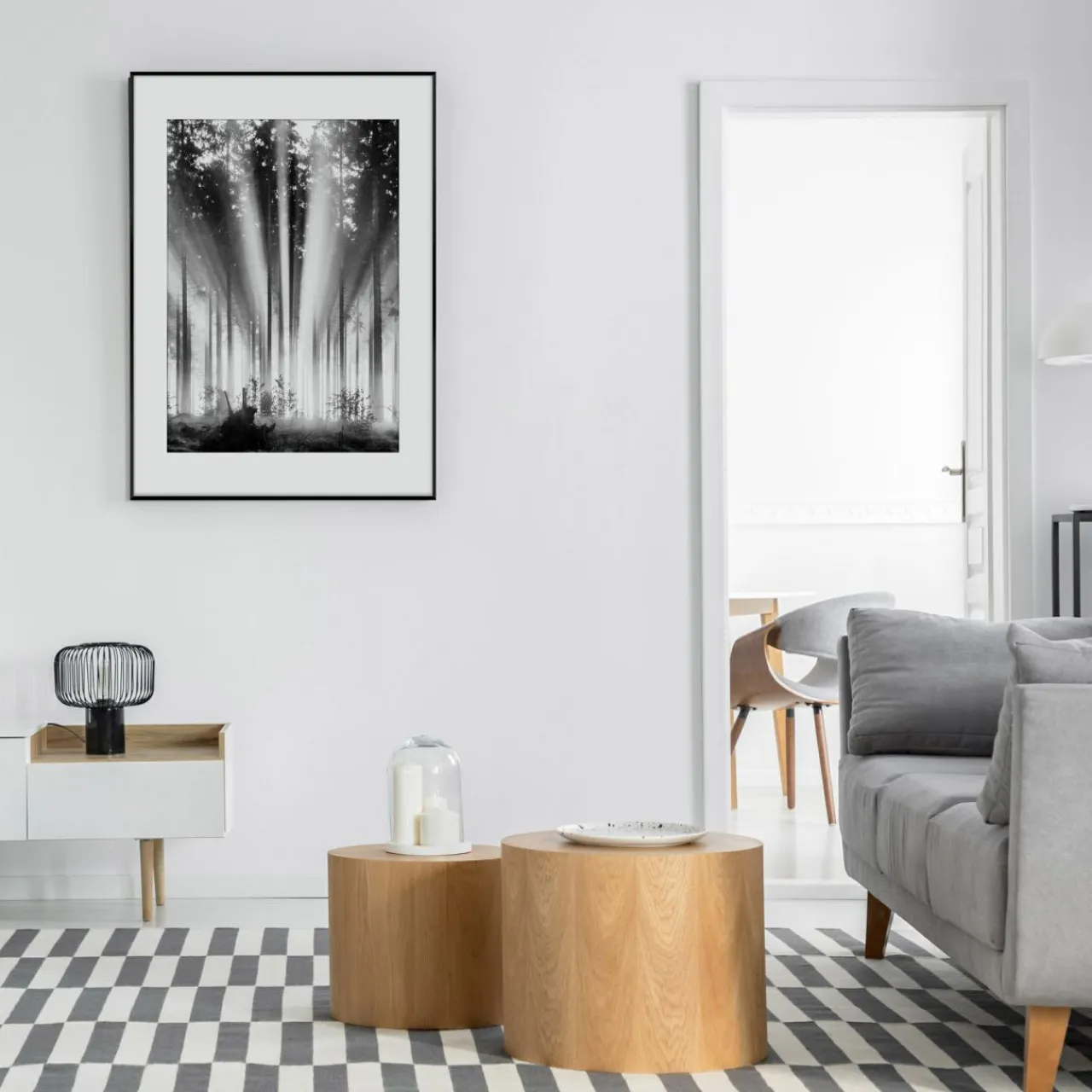Czarno-biała grafika sprawdzi się w nowoczesnych czy minimalistycznych aranżacjach, podkreślając elegancki, nieco artystyczny charakter wnętrza.