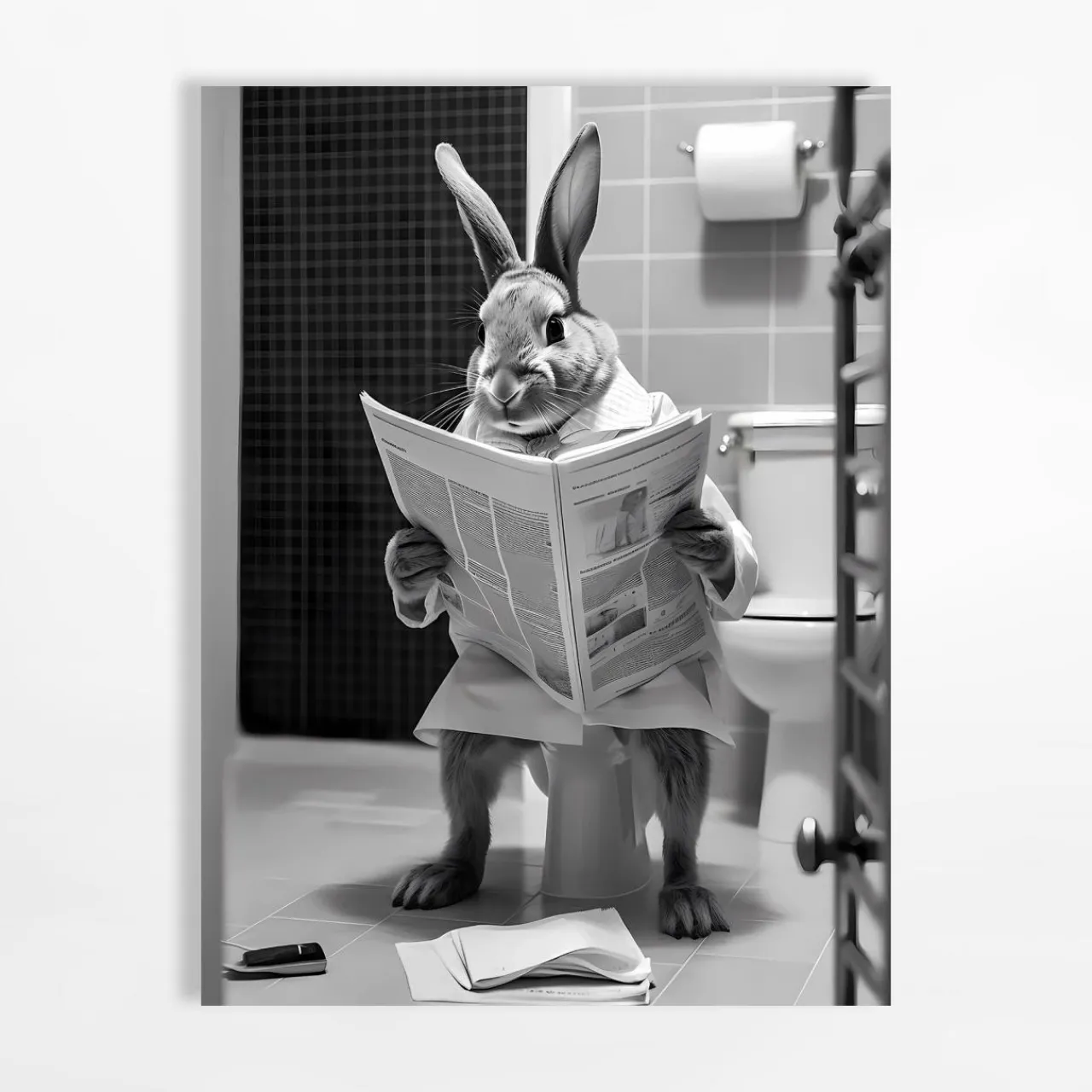 - Grafika z królikiem czytającym gazetę na ubikacji rozweseli Ciebie i Twoich gości.
