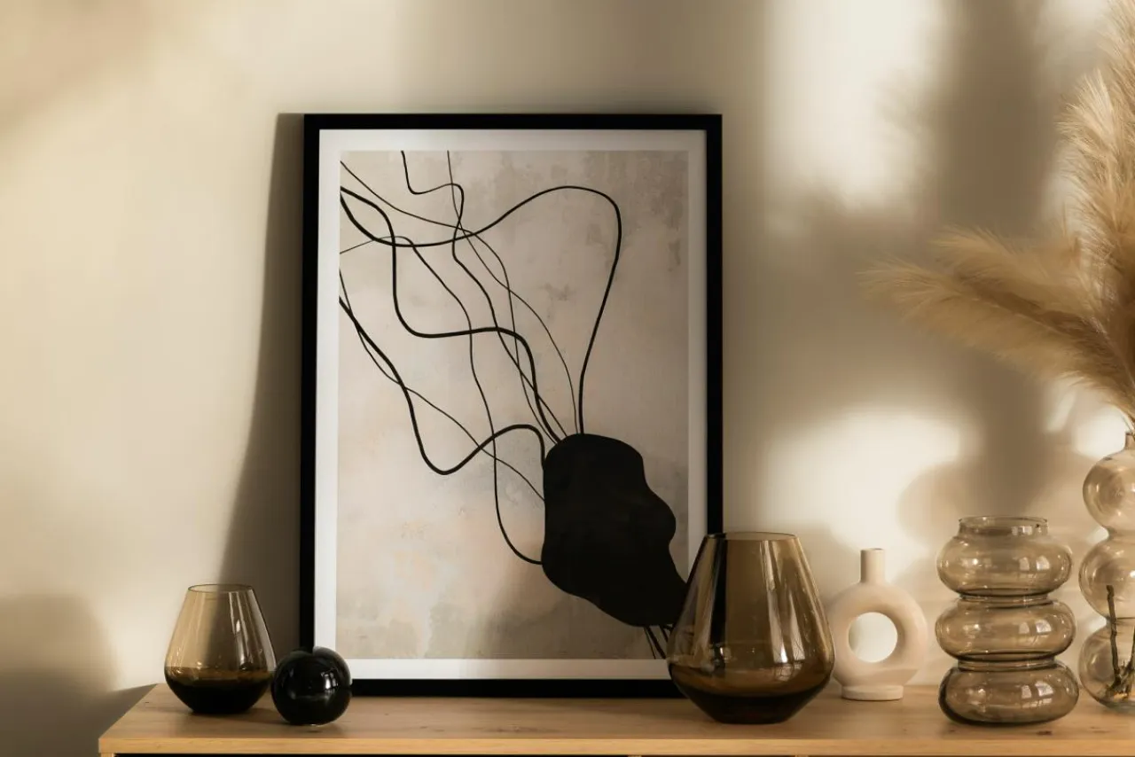 - Przy jasnej aranżacji Twoi gości z pewnością zwrócą uwagę na czarną ramę, która wizualnie zaznaczy granice obrazu.