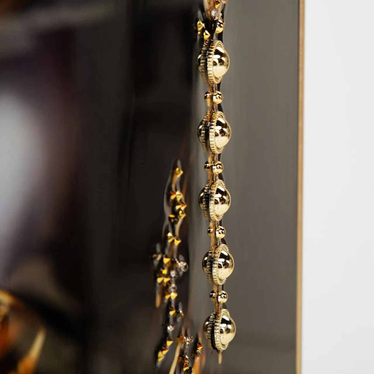 - Kontrast pomiędzy czernią a lśniącymi złotymi zdobieniami podkreśla kobiece rysy oraz wprowadza do wnętrza nutę luksusu i egzotyki.