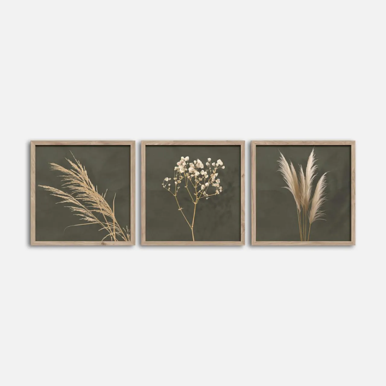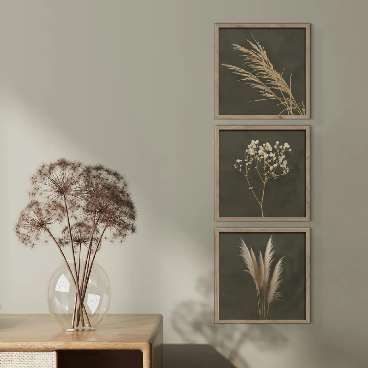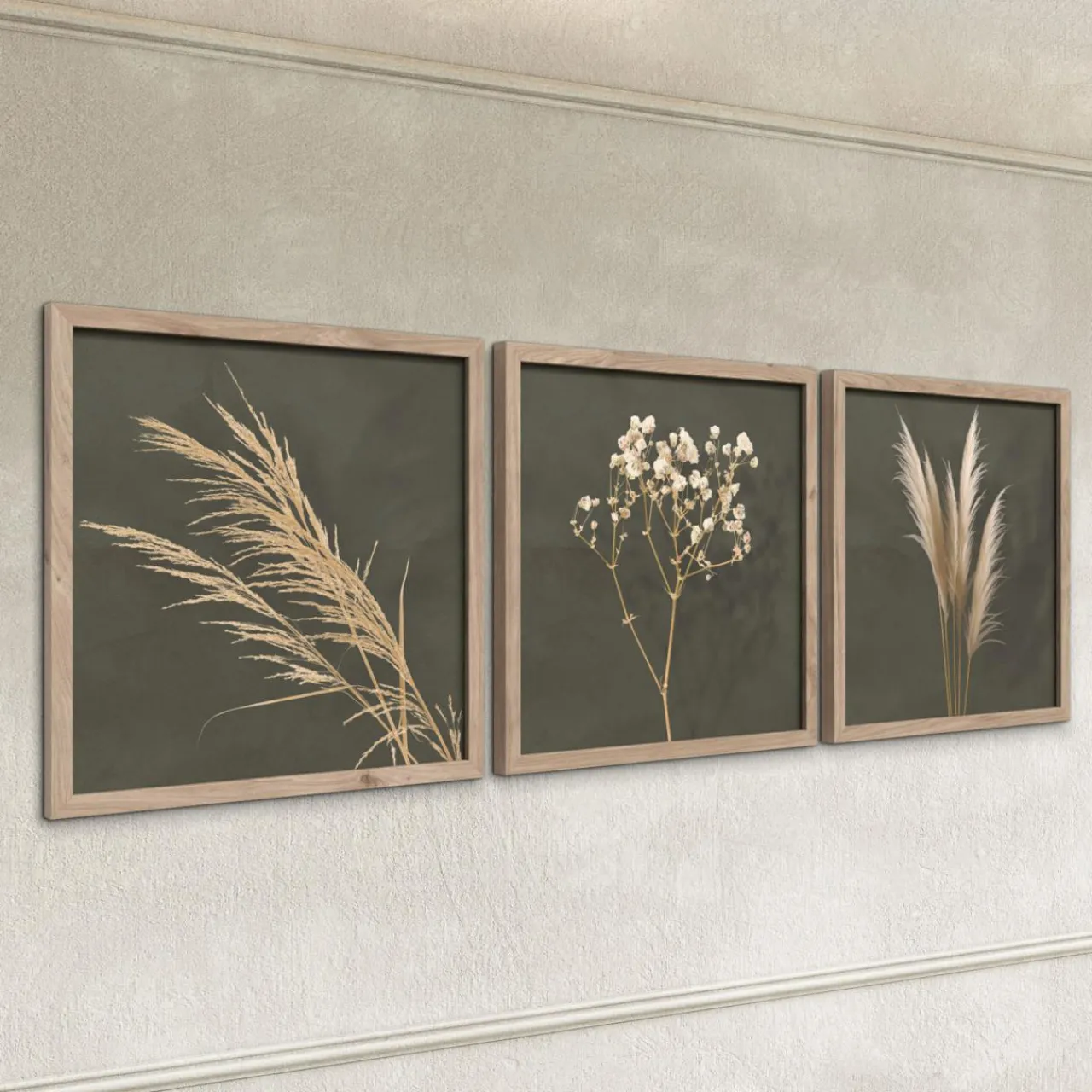 Obrazy WALL PAMPAS wyróżnią się na tle jasnej aranżacji. Będą pasować do kremowych, białych lub beżowych ścian.
