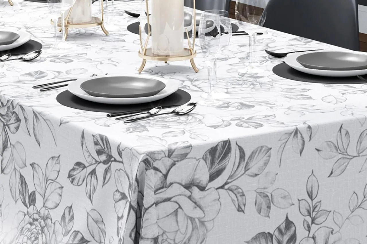 Wybierz obrus który jest wykonany jest z tkaniny bawełniano-poliestrowej.