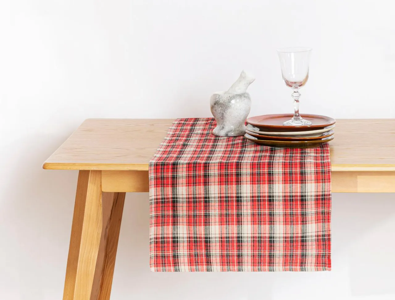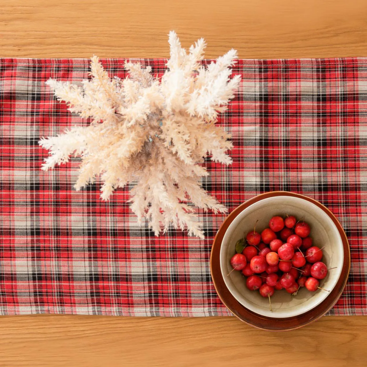 Dzięki bieżnikowi w szkocką, czerwoną kratę udekorujesz swój stolik kawowy tak, by zapraszał do położenia na nim filiżanki z ciepłym napojem.