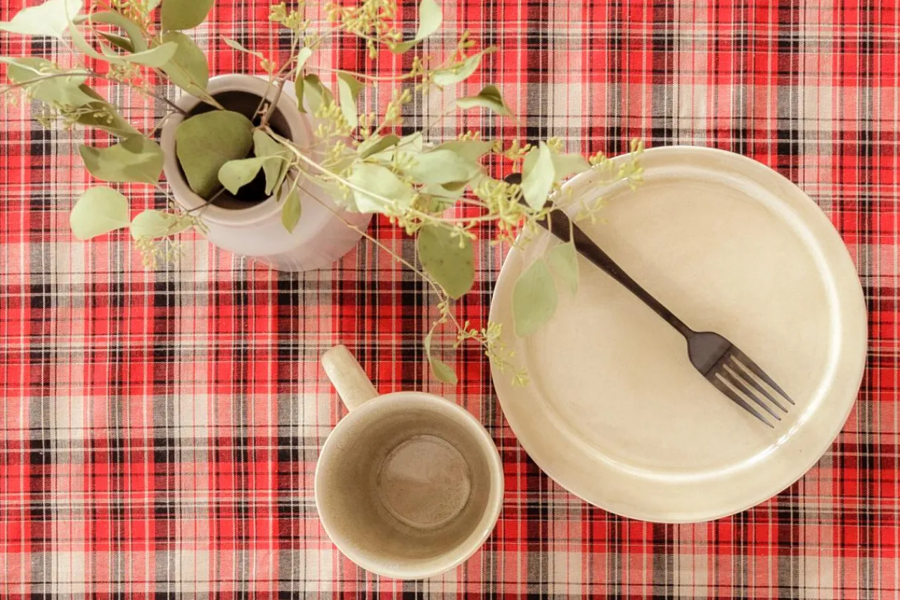 Stół w swoim salonie lub jadalni udekoruj obrusem z wzorem czerwonej, szkockiej kraty.